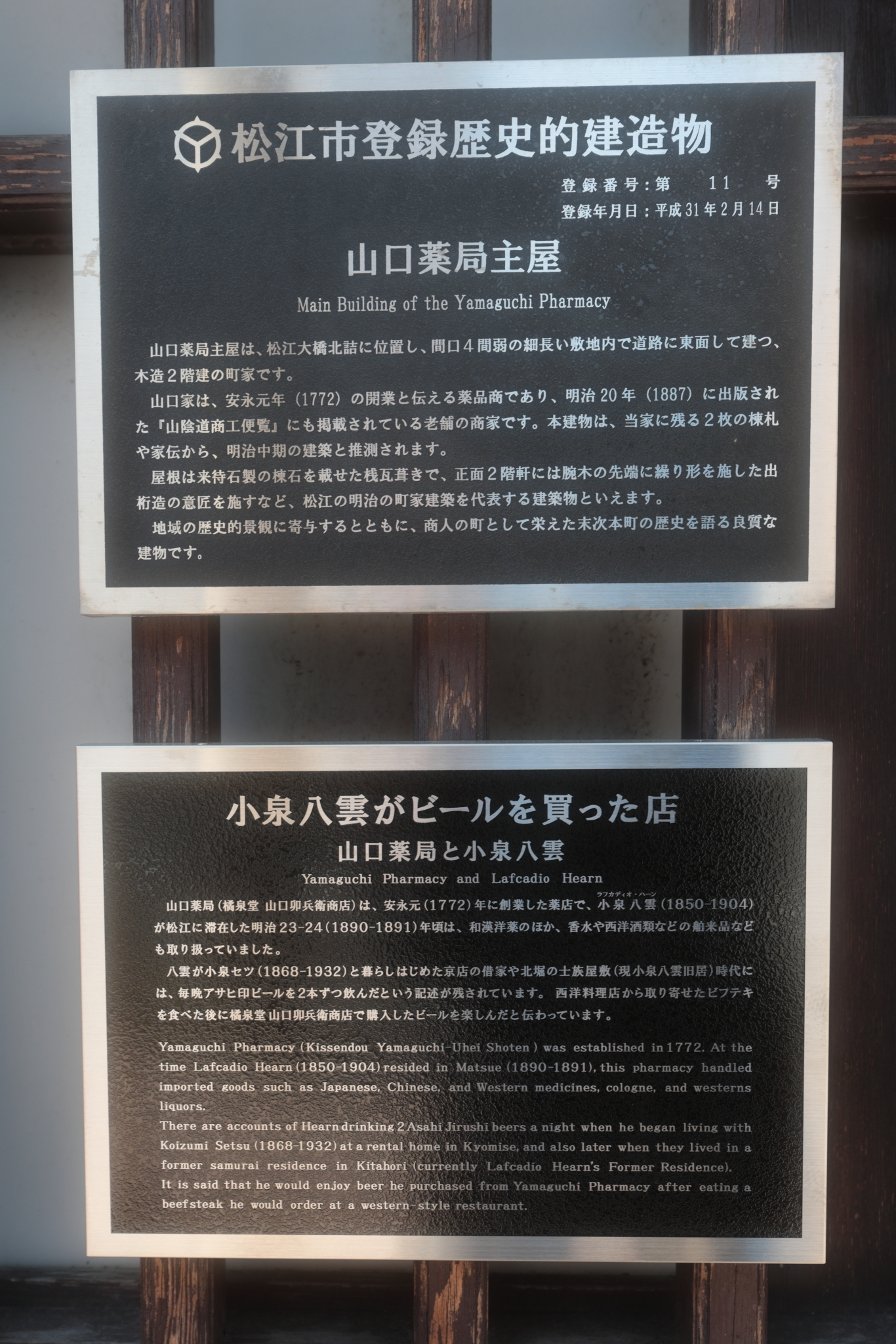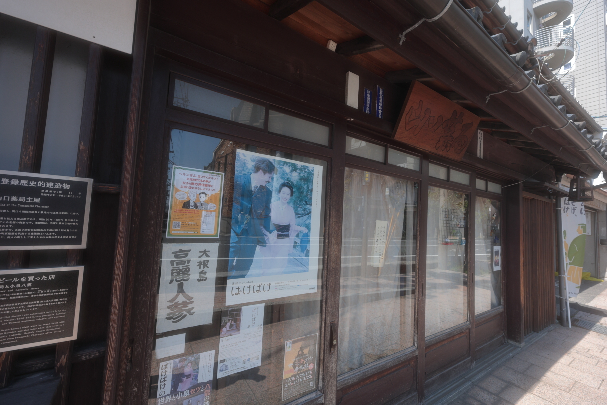 13. 江戸時代の安永元年(1772年)創業の「山口薬局」もすぐそばでした。ドラマでは柄本時生さん演じる山橋才路が店主を務める、松江で唯一の舶来品(ビールなど)を扱うハイカラな山橋薬舗として描かれていました。