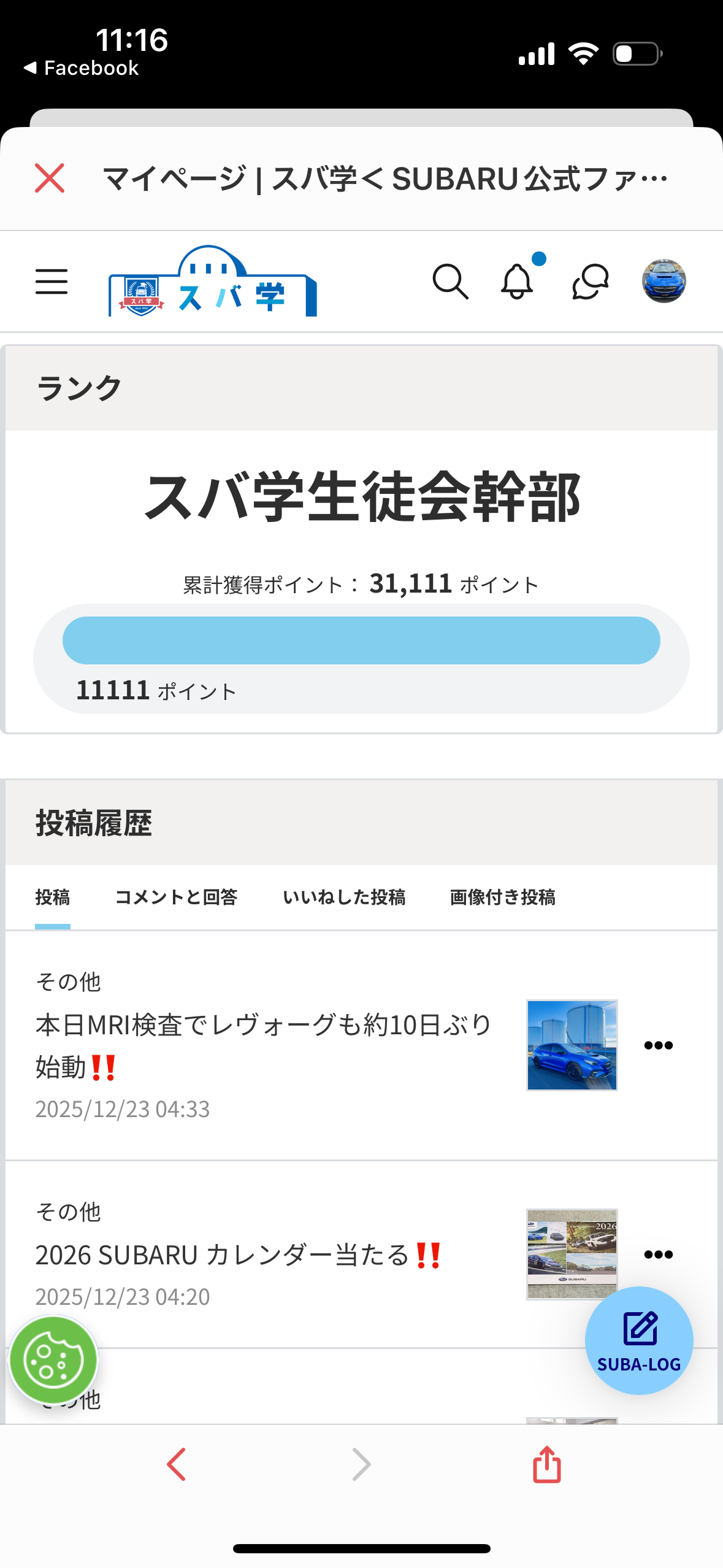 トップ > その他 > 久しぶりのゾロ目‼️ BOXER4MANIA 2025/12/25 09:54 久しぶりのゾロ目‼️ スバ学事務局【公式】 スバ学ポイントが20000ポイントを超えてから初めての5桁11111のゾロ目を通過しました。 どこまでポイントが増えていくのか挑戦は続きます。 今後とも宜しくお願いします。 いいね 共有する 共有する X facebook LINE リンクをコピー コメントする 0 件の返信 (新着順)