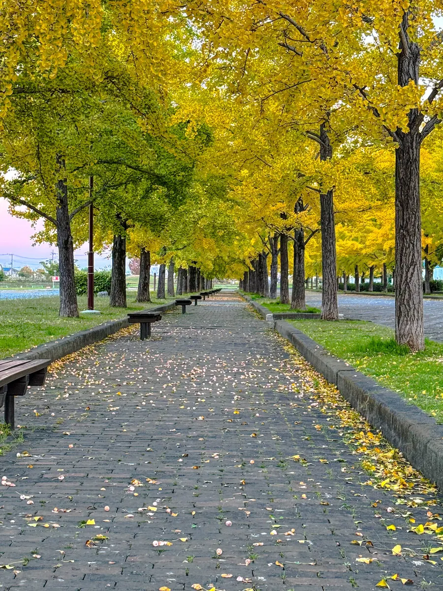 埼玉県加須市にある加須はなさき公園(加須はなさき水上公園)のイチョウ並木を撮って来ました。