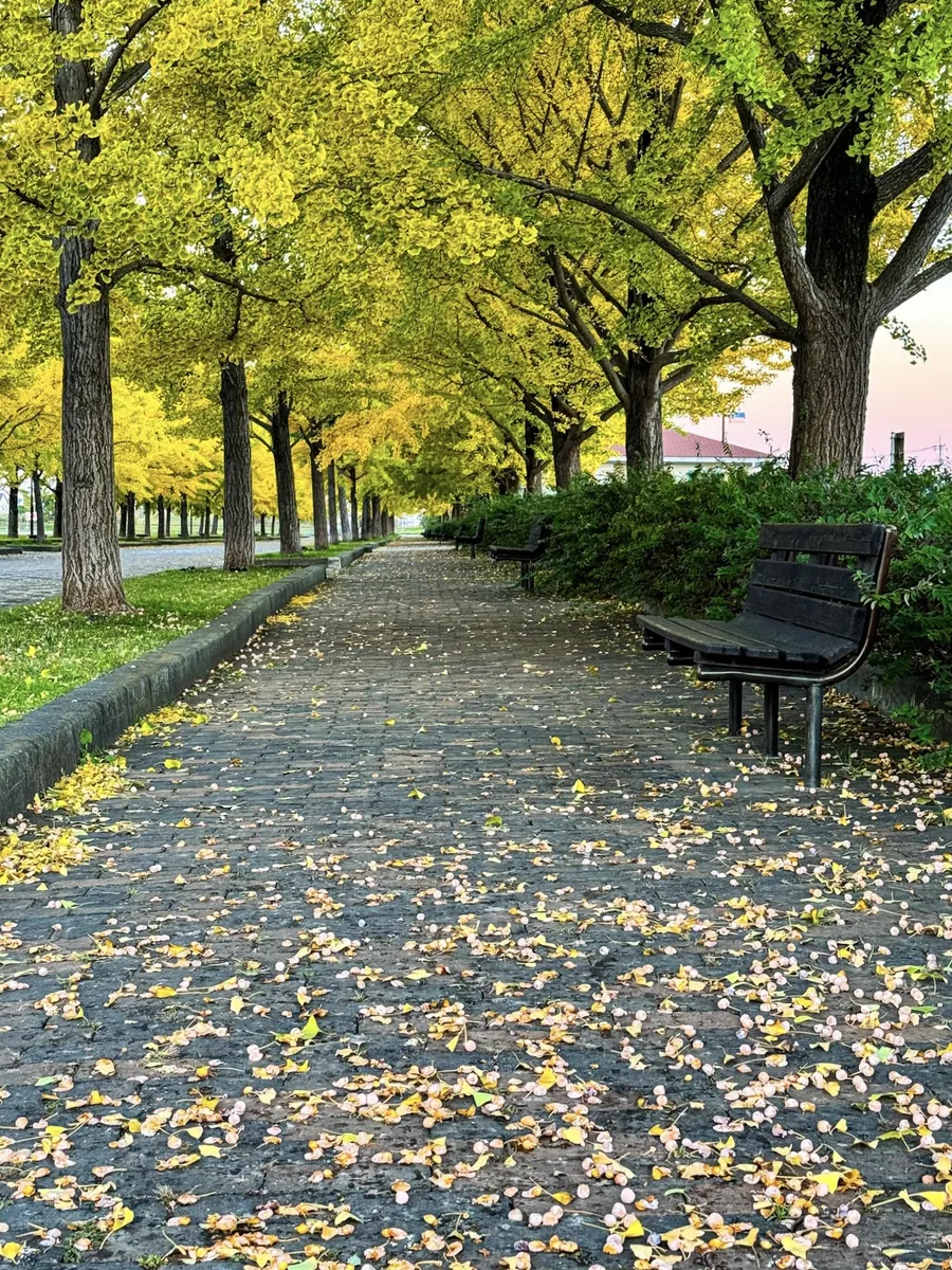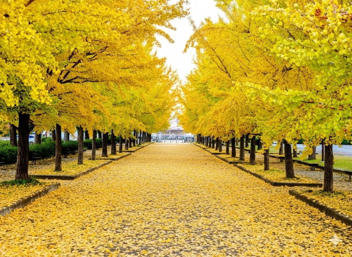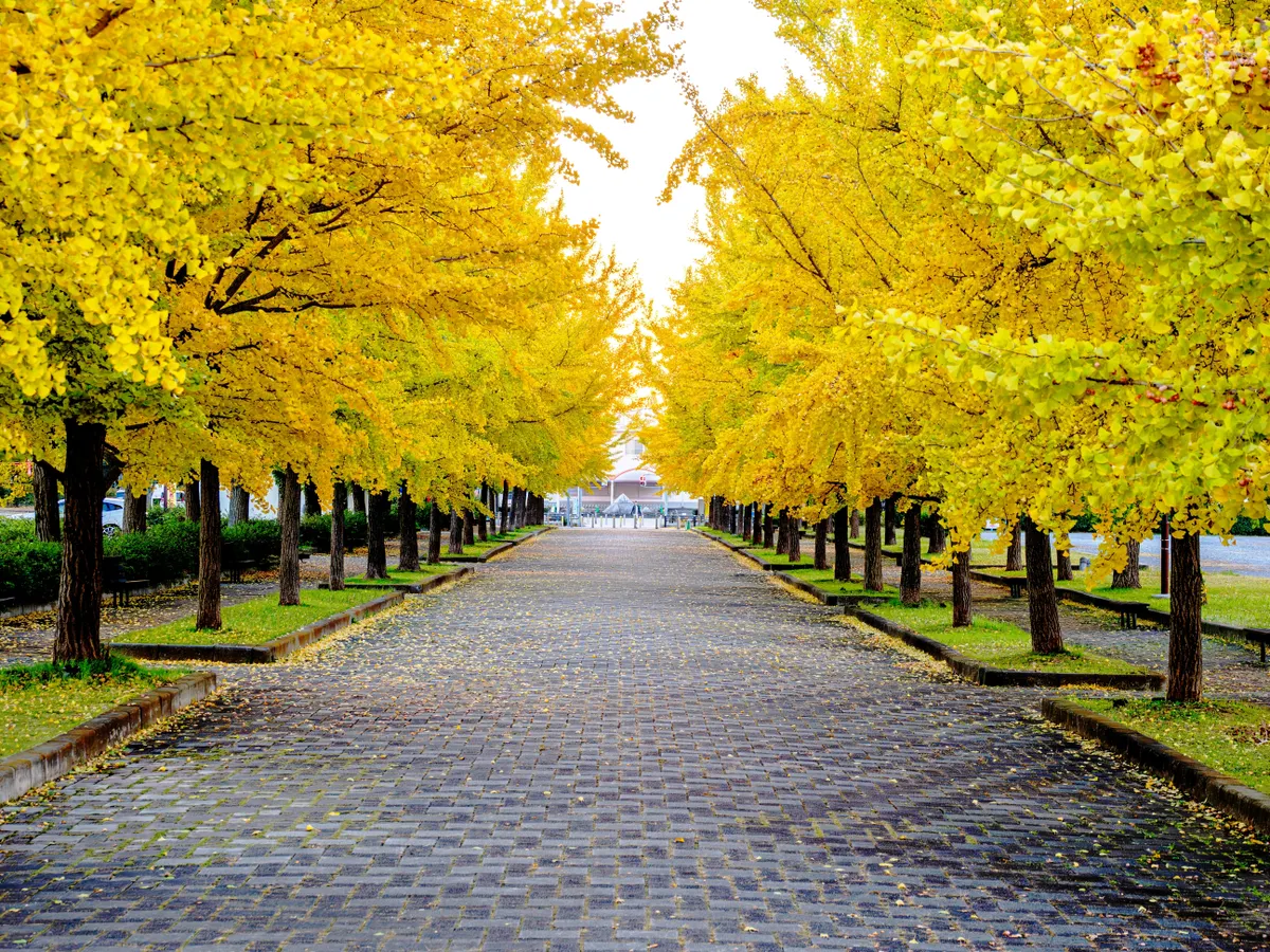 落葉によって黄色い絨毯が作られた頃がイイかも。