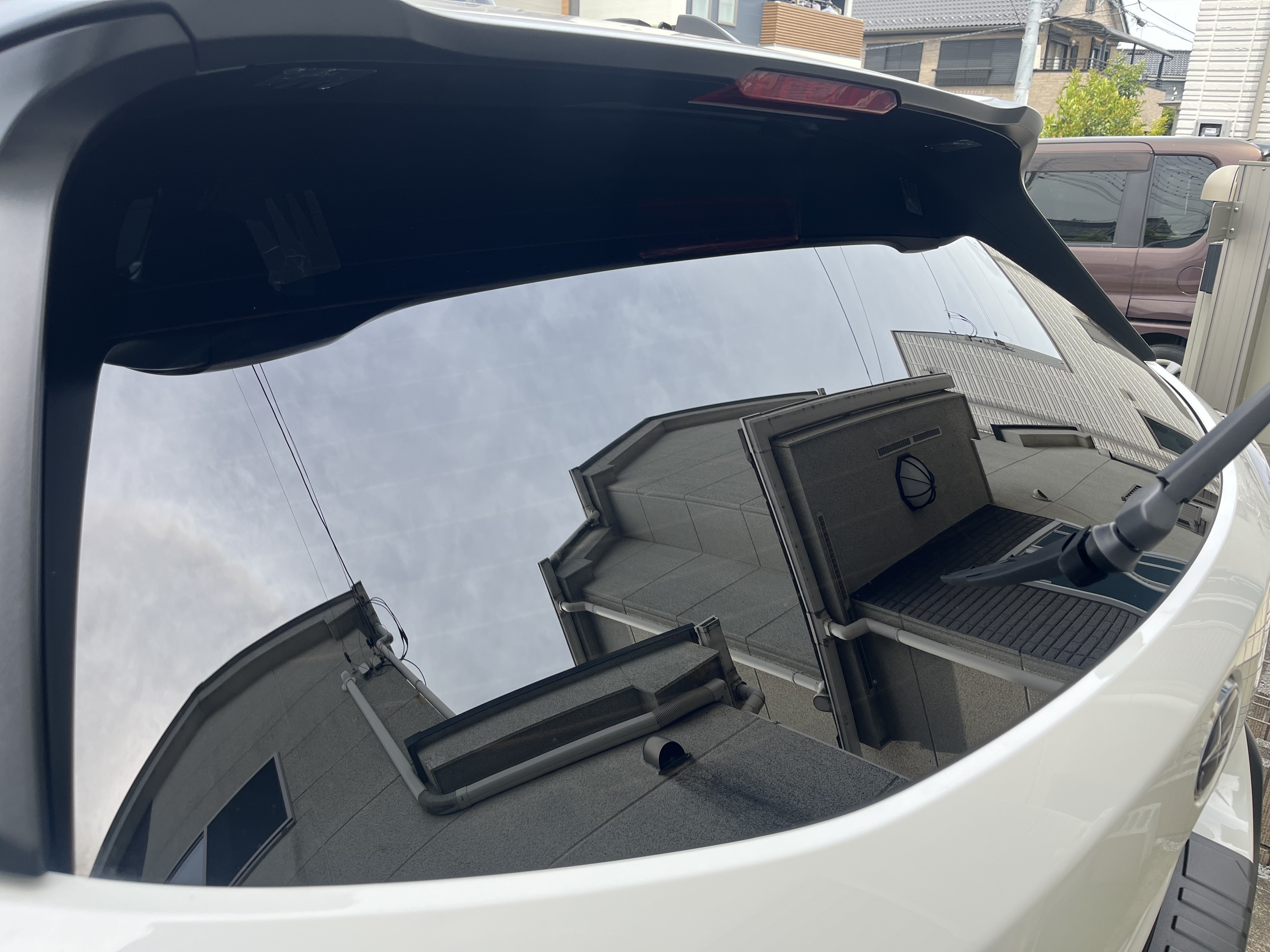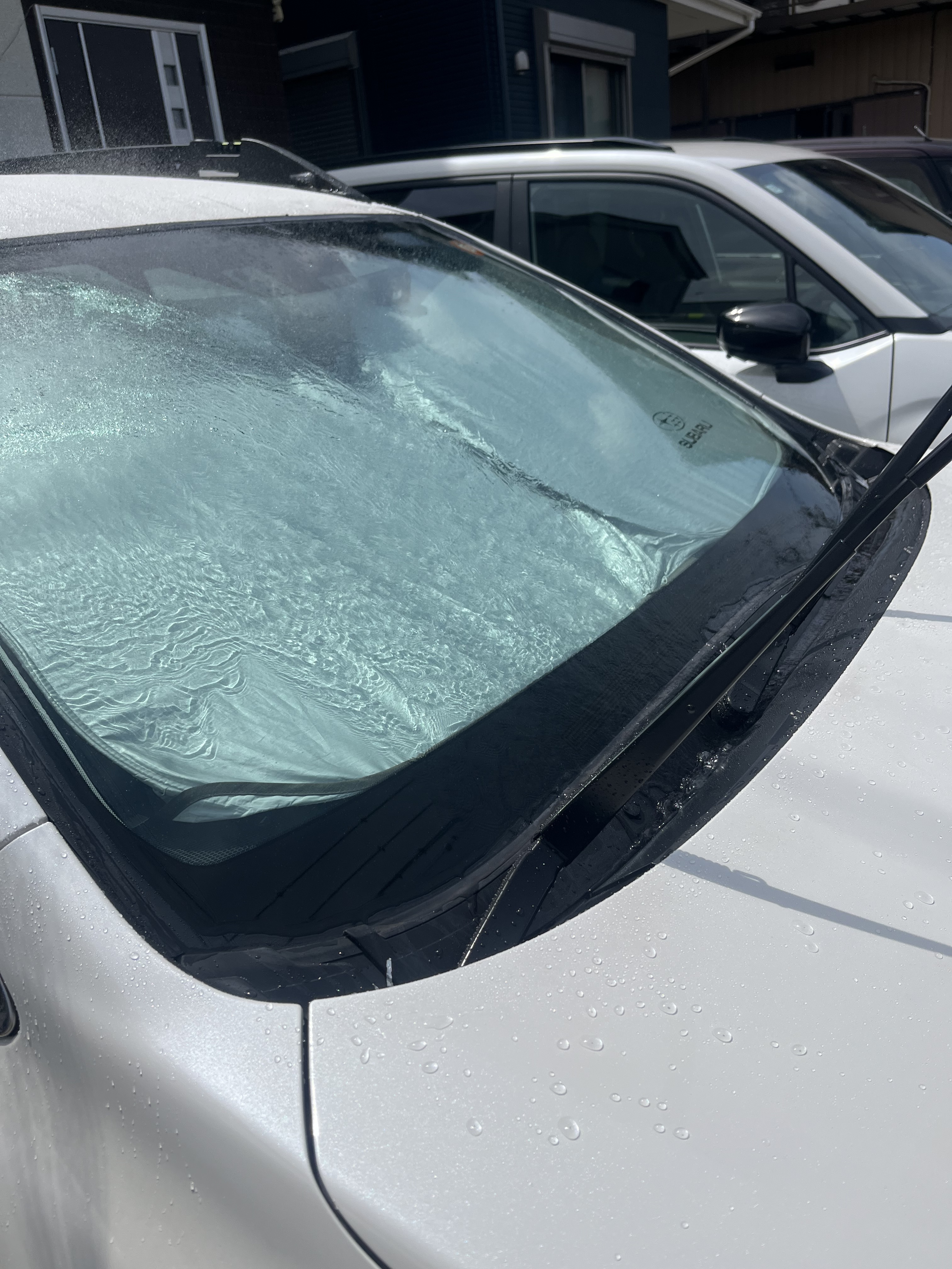 空港から戻り、ちょうど日差しも出始めたので、アウトバックの前後ガラスをコーティングしました。