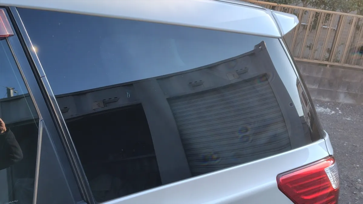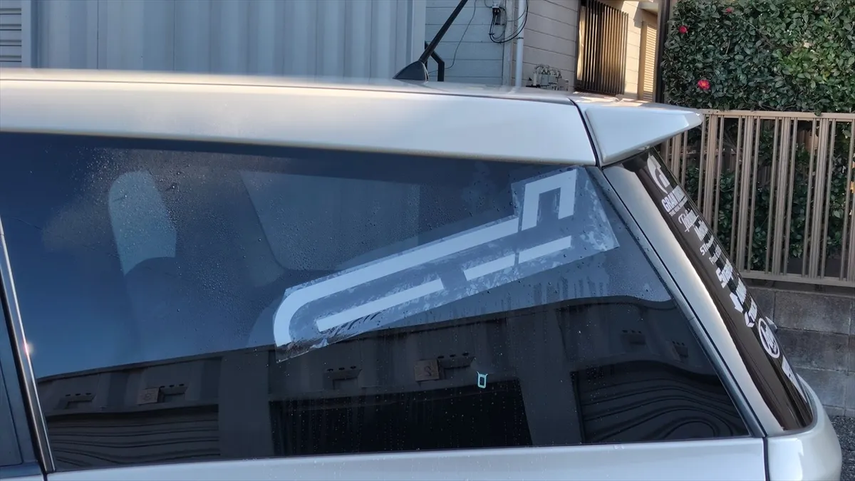 左右後方の窓の不用なステッカーを剥がして、シンナー等で拭き上げて、