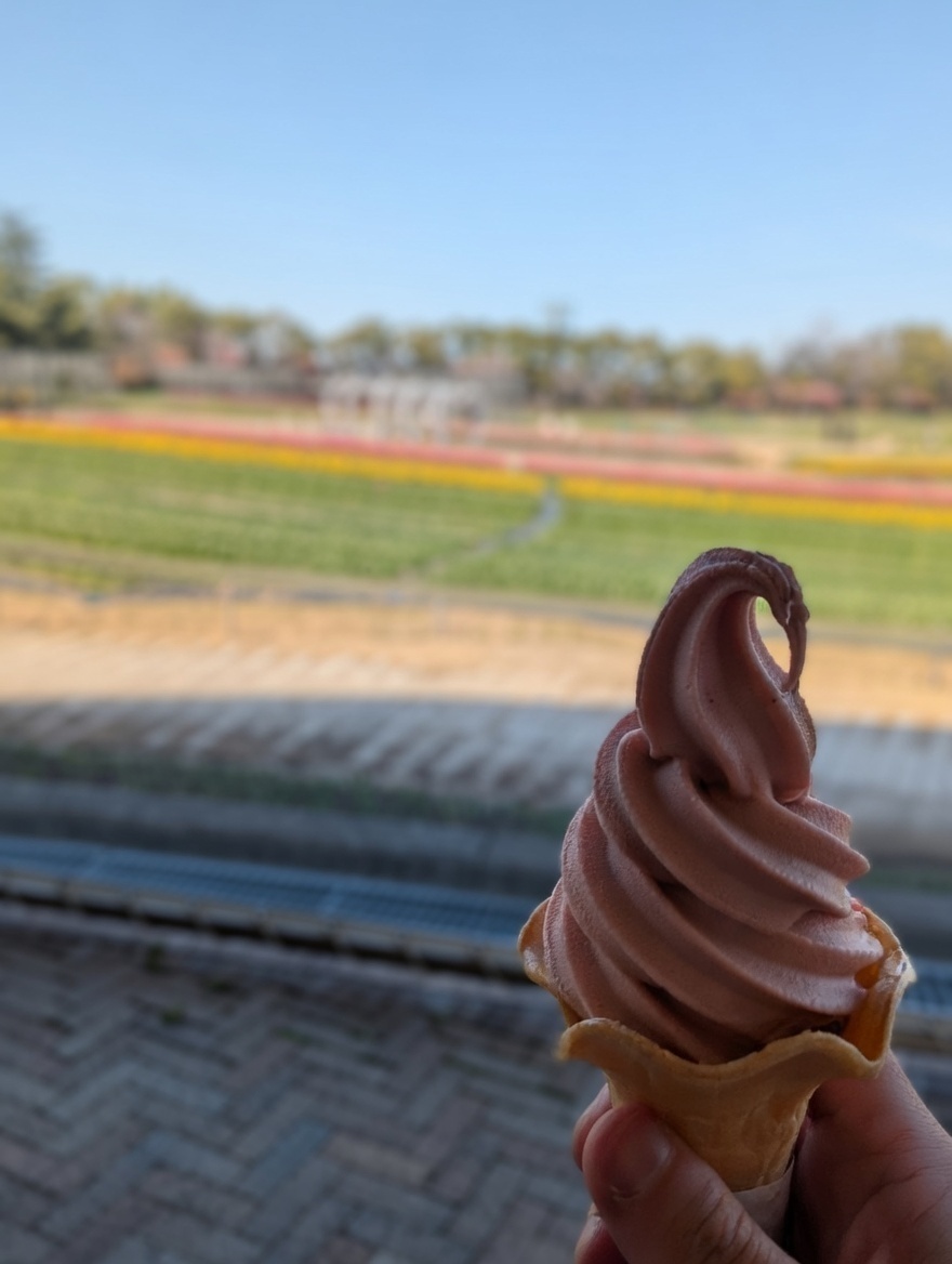 最後はチューリップ畑を見ながら、さくら🌸味のソフトクリーム