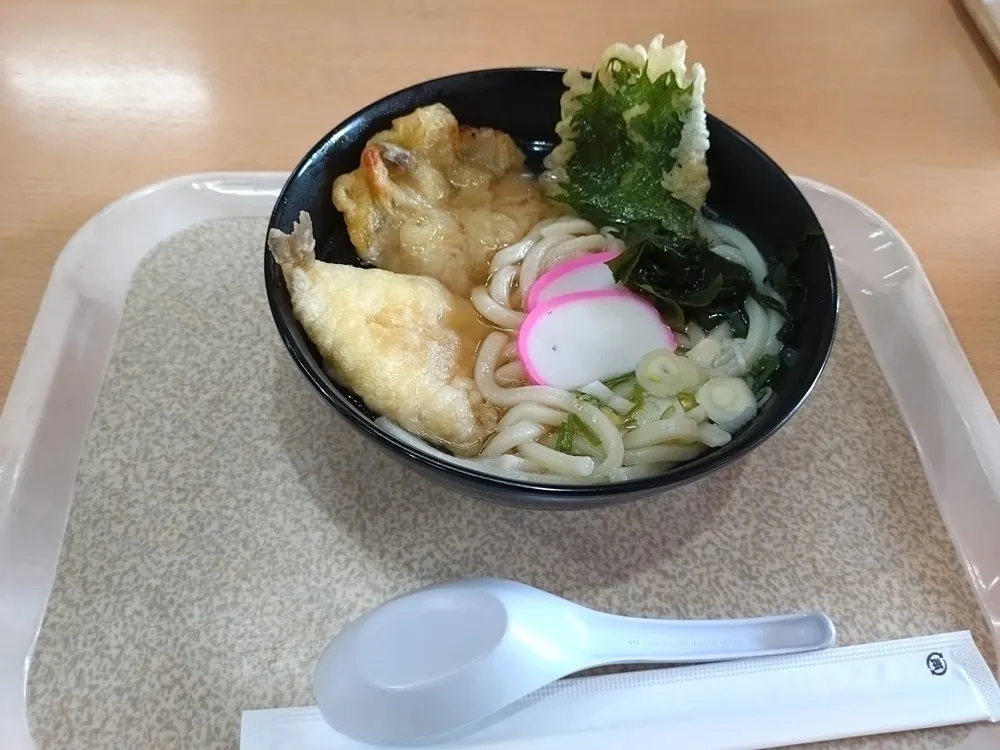 浜うどん。天ぷら三種が載って700円とお安く、味は言わずもがな絶品です。