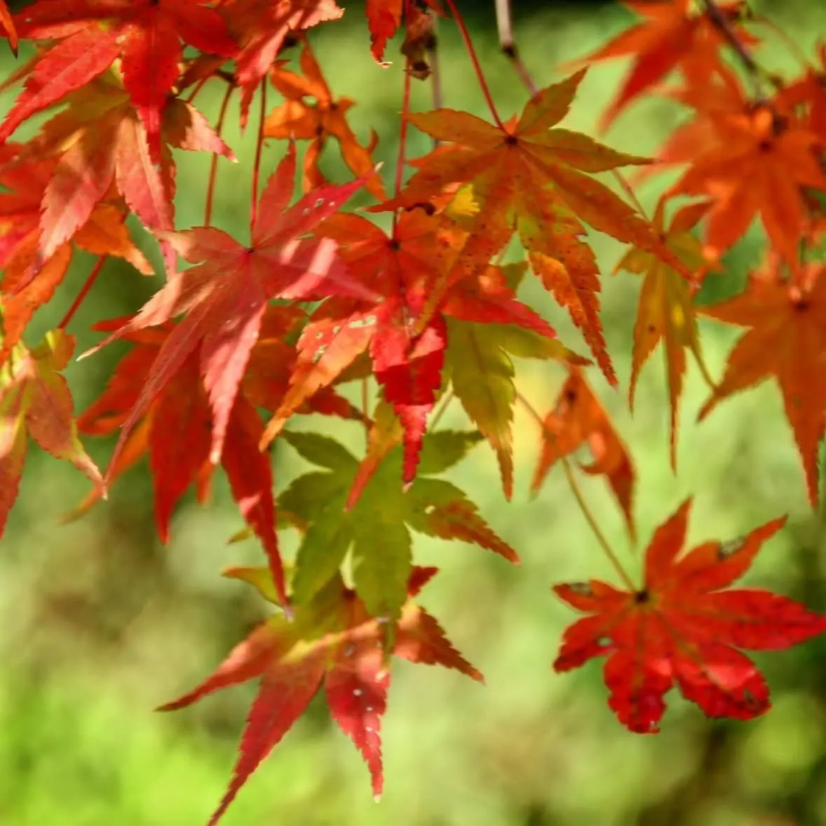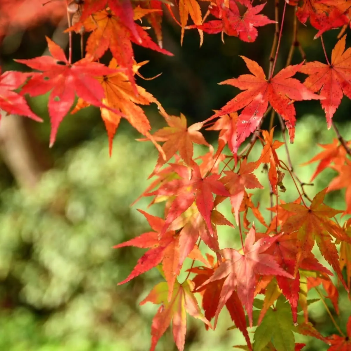 太陽の光を背にして見えるもみじの葉が赤や黄色、オレンジ色などでカラフルできれいでした✨