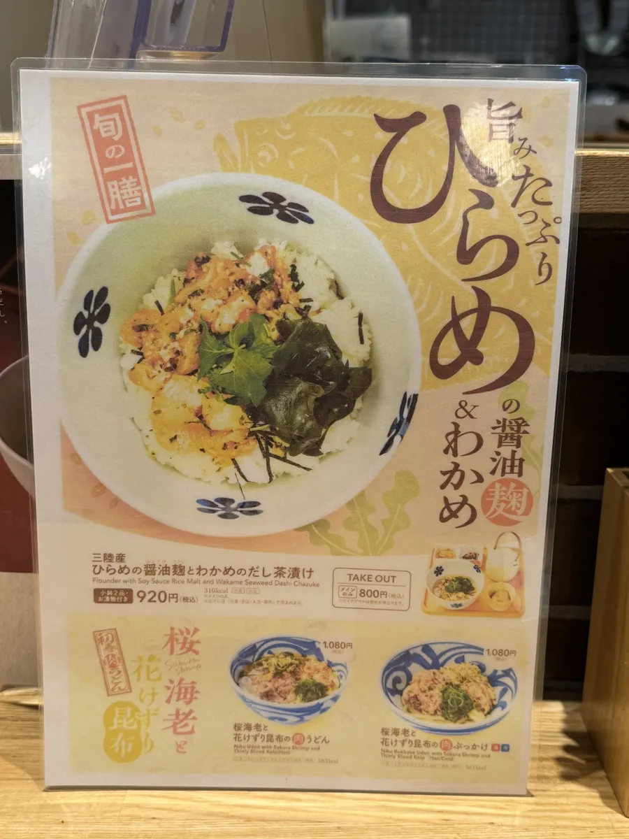 レギュラーメニューのほかに季節の出汁茶漬けもあり、2月はこちらになっていました😃