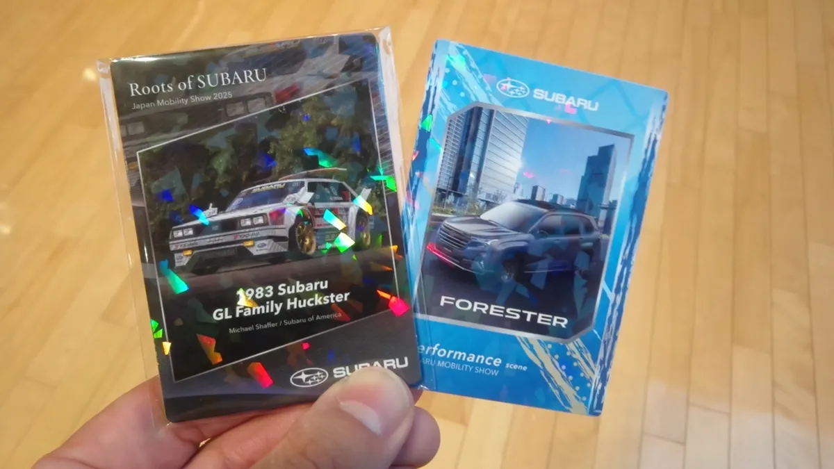 付けて再投稿して、無事SUBARU COLLECTION CARD(現行販売車種1枚+ジャパンモビリティショー出展車両6枚セット)をゲット。