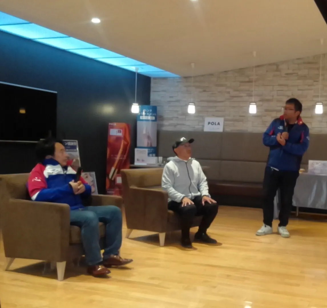 じゃんけん大会までの繋ぎに、お客さんとして来てた(昨日もこんなのありましたよね???)スバリストモータージャーナリストの井元さんも飛び入り参加。