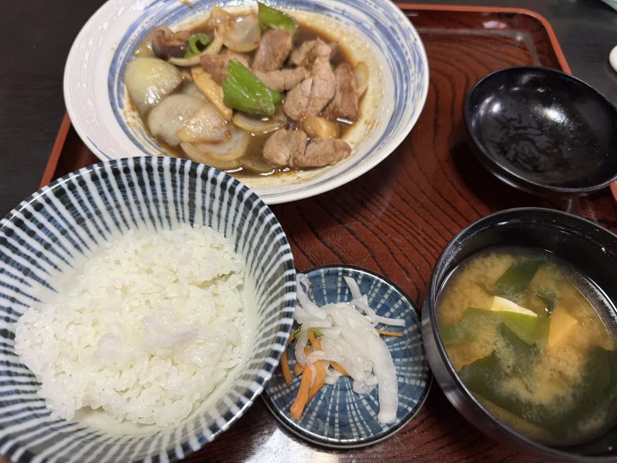 ヒレ肉と野菜の生姜焼きの半ライスセットを注文、美味しかったです^_^