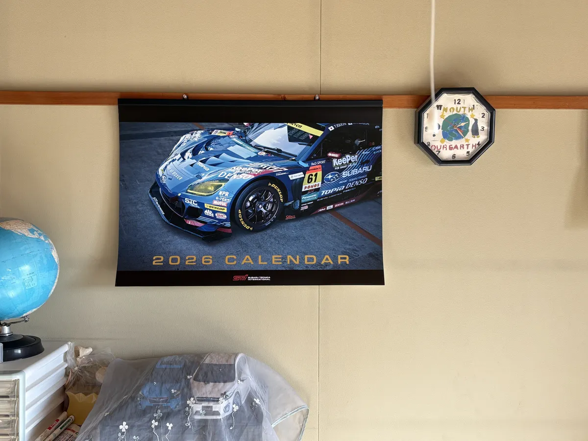 SUBARUのSTIのカレンダーは、カレンダーというよりもGTレースのポスターで、BRZがたくさん散りばめられていて、とても毎月めくって剥がすのがもったいないなと思いました🤣