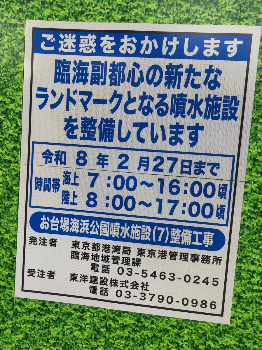 あと、レインボーブリッジ側の海では、東京都が何やら噴水を作っていました