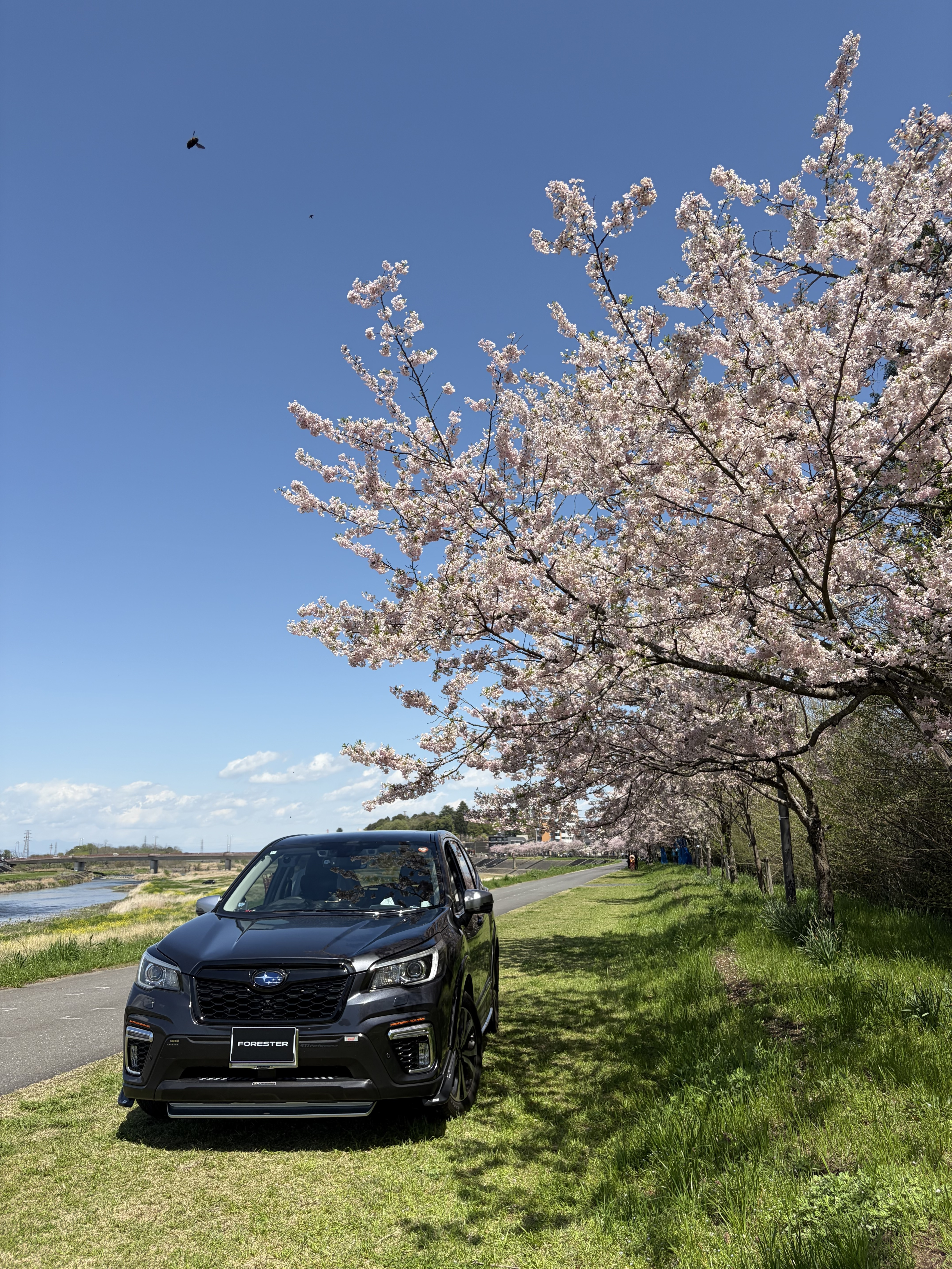 運よく思川沿いのベストポジションに相棒を停めて、桜🌸とのコラボに興奮しました👍