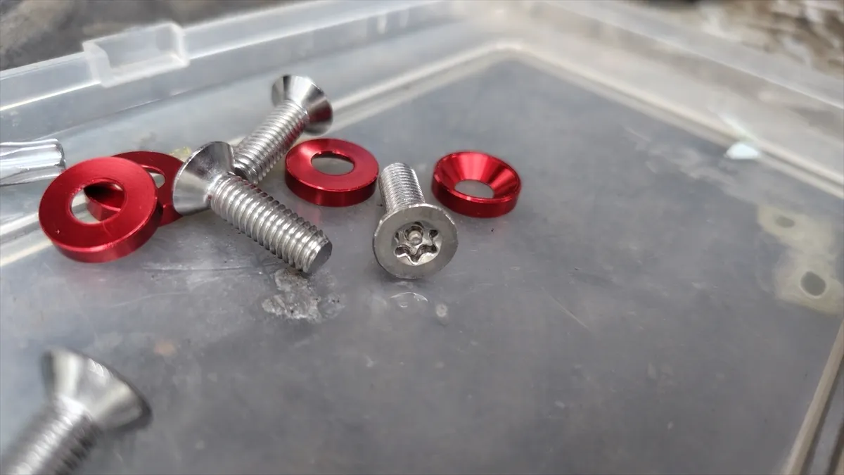 トルクスネジは4つセットだったので、フロントにひとつ、リアにひとつ、残りの2つはバイクに使用しましたが、、、