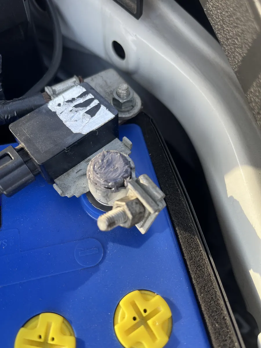 届いた中身はエアクリーナー、静電気中和グリース1g、綿棒1本、金属ブラシ、説明書です。フィルターが滑り止めみたいにキュキュして折り曲げできちゃうのに驚きました笑。まずはグリース塗布に取り掛かります。バッテリー端子+−両方に塗ります。
