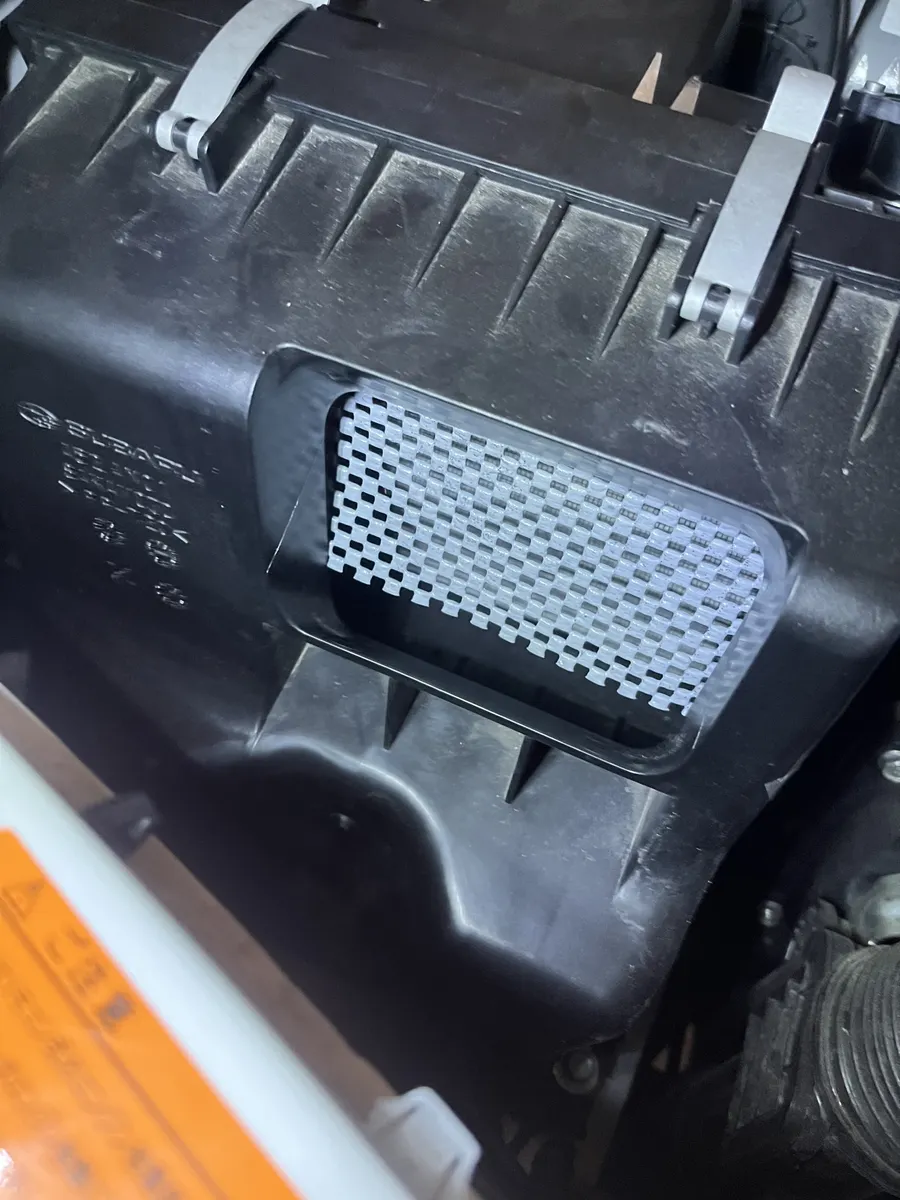 エアクリボックス内やプローバフィルターをいじるのはマズいと思ったので、上記画像のように、空気の入口に配置し、プローバフィルターの枠とボックスの間に先端ほんの少し挟んで装着しました(1枚目の写真ではフィルター見えてますが、調整してさらに奥の方で噛ませるようにしてます)。これで立てることができましたが、フィルター下部が吸気の勢いでバタついて、フィルターを通らずプローバに辿り着く空気がいるのでは、という課題が残ってます。フィルター切って吸入口にダイレクトにつけるのがいいかな、、、ここは効果次第で、とりあえず様子見でいこうかなと思います。