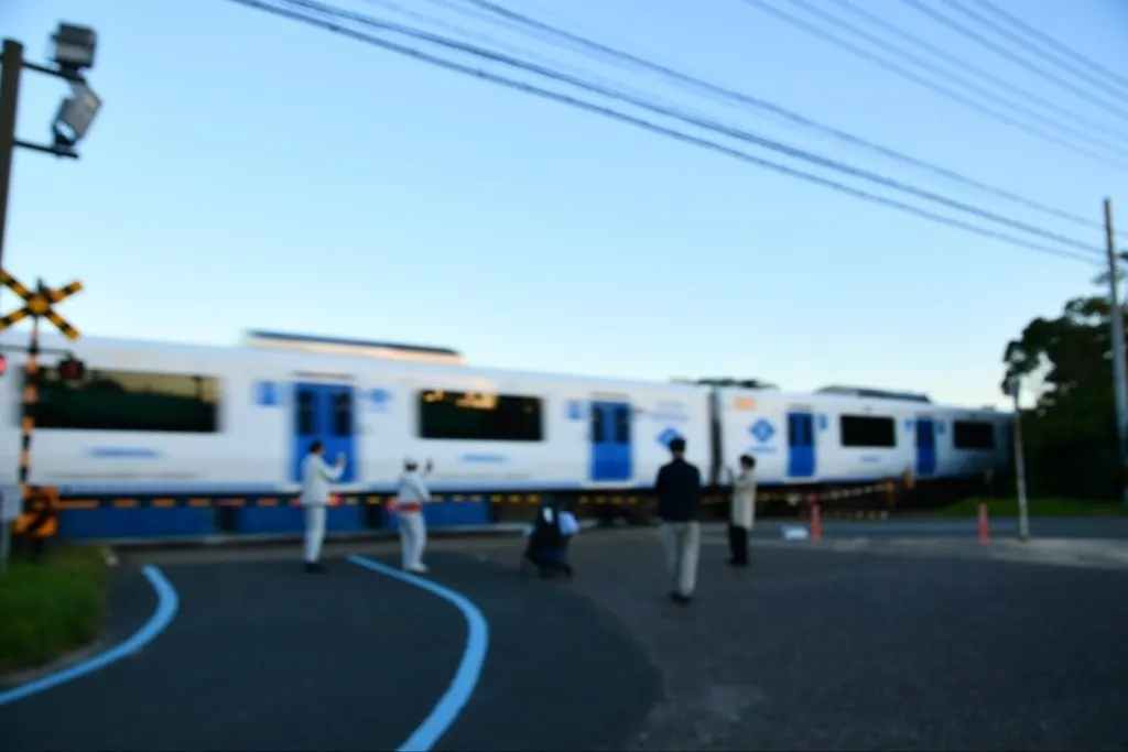 リチウムイオンバッテリーで走るDENCHAが横切りました🔋列車もバッテリーで走る時代が来ています😼
