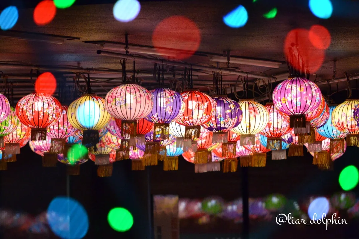 普通のLEDとかでなく、色とりどりの提灯なのが風情あって良いですね👍