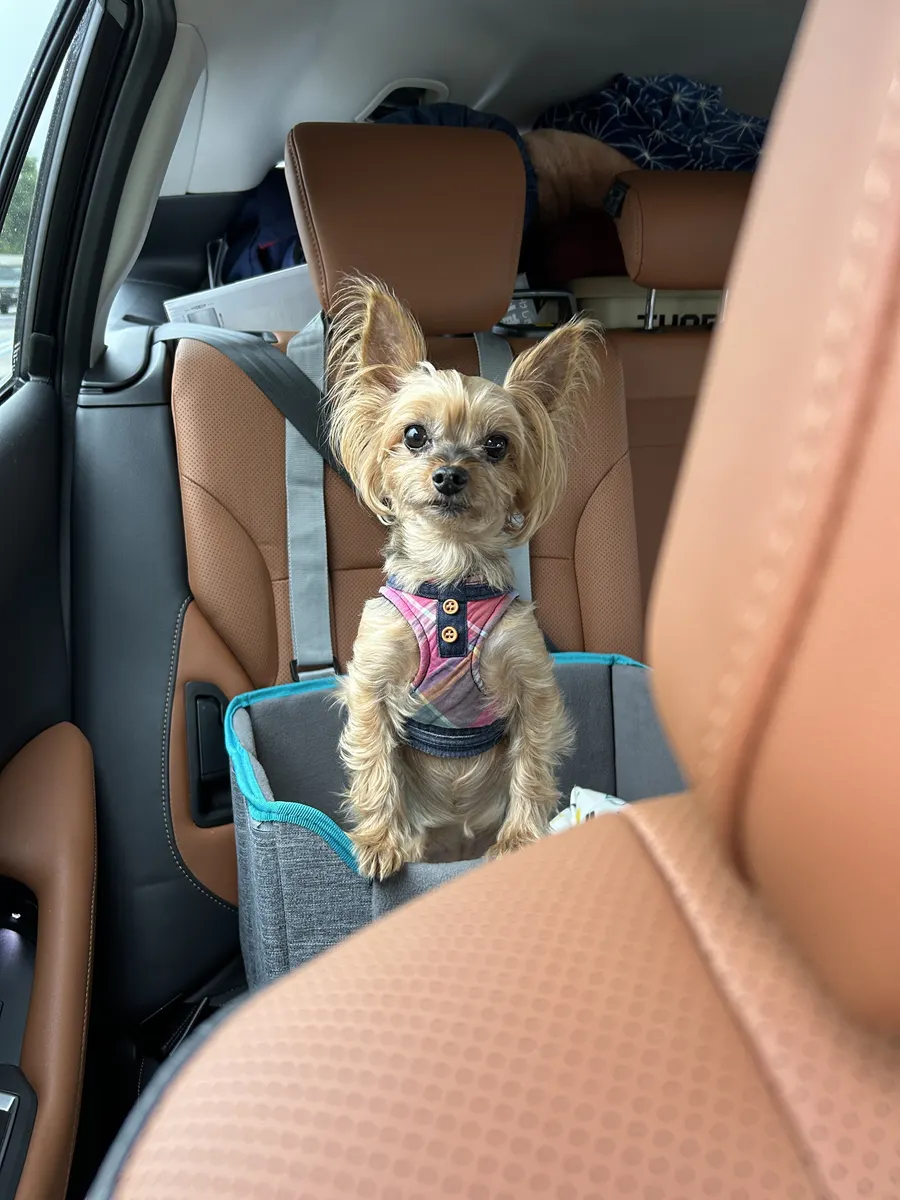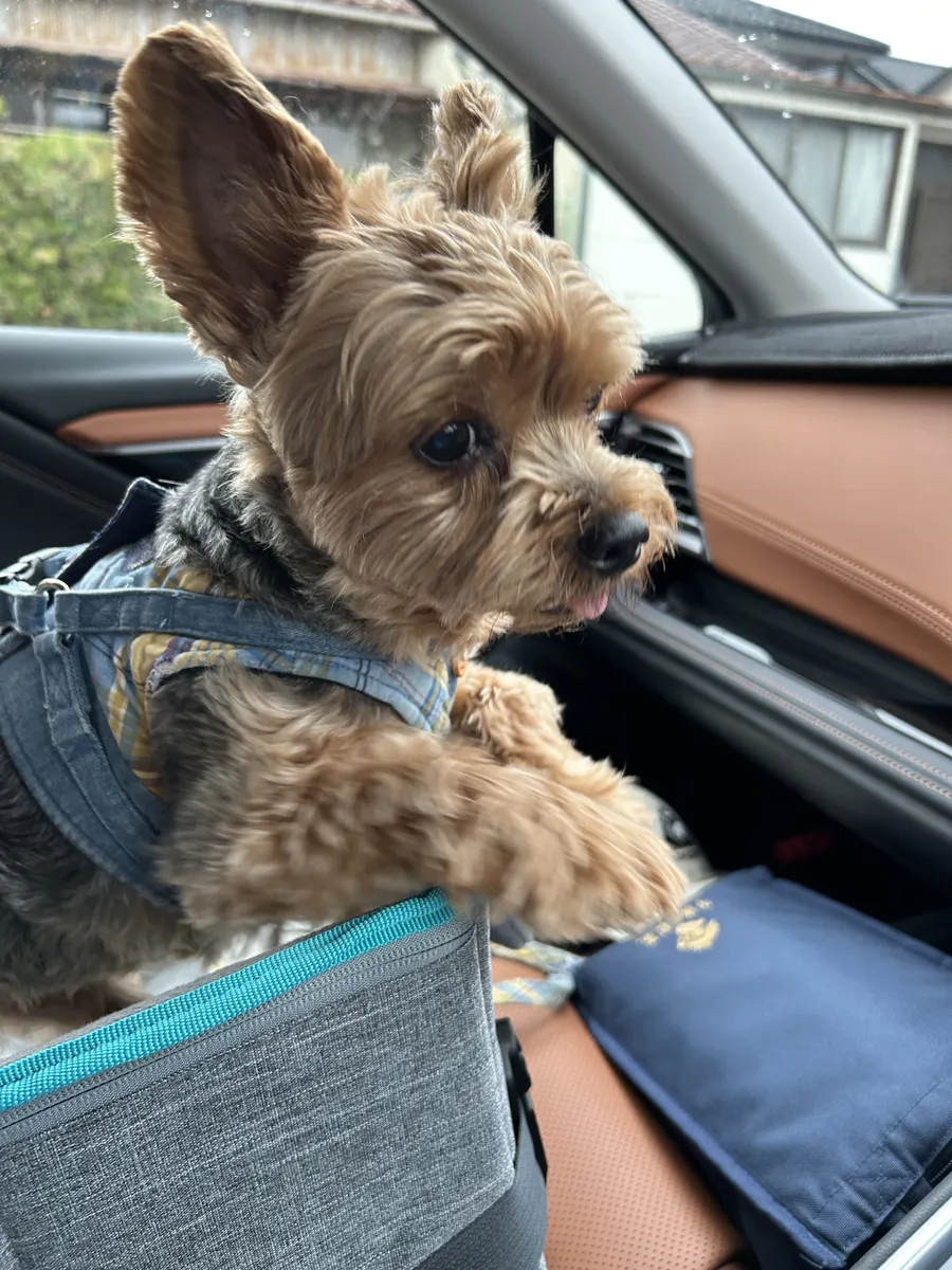 ↓移動時の犬たち(前後にわけて乗車)