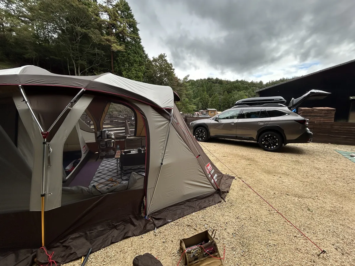 テント、マスターシリーズのコクーンじゃないですか〜羨ましい👍アウトバックのボディカラーとも合ってますね!