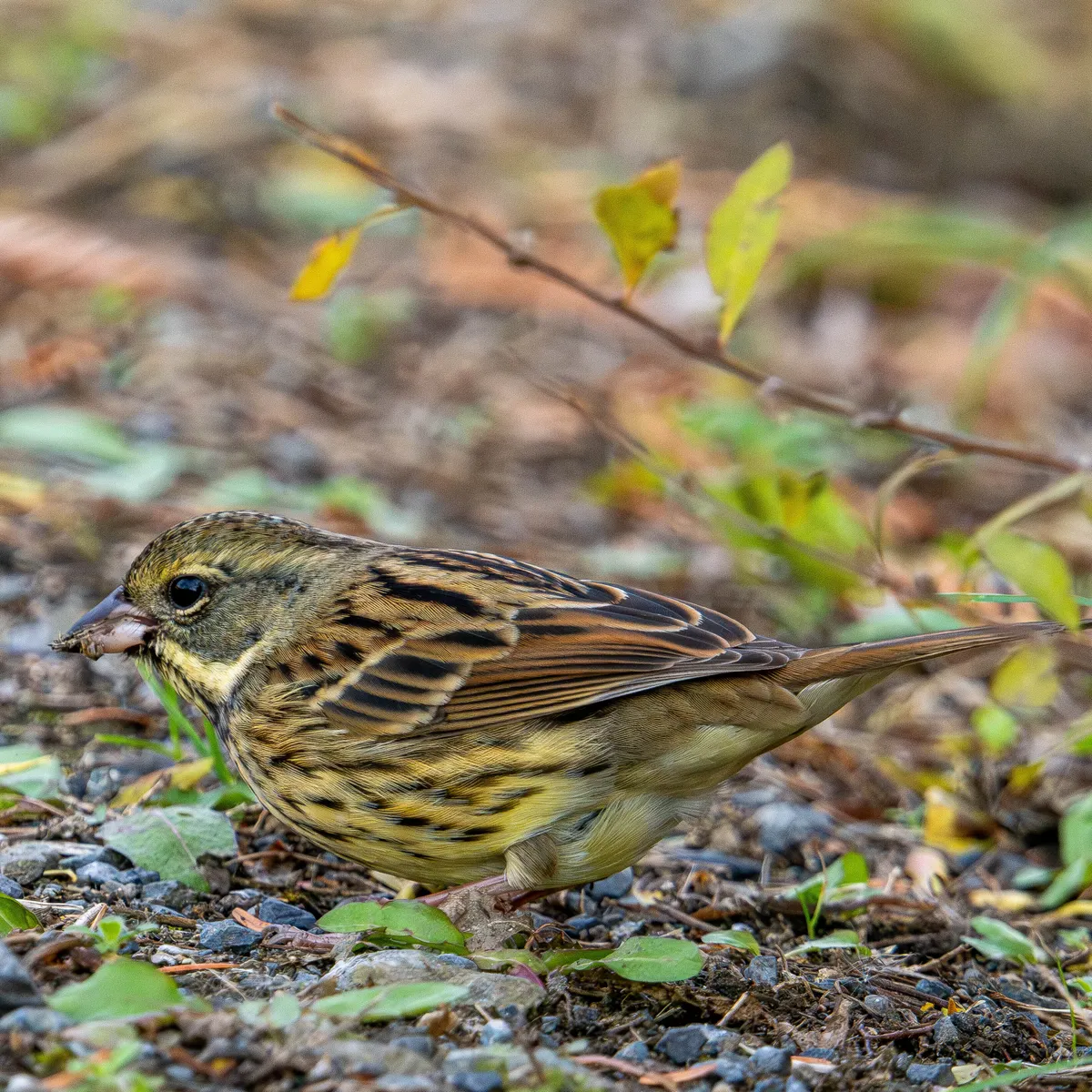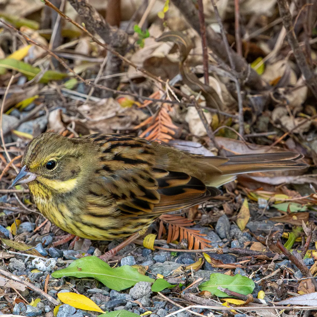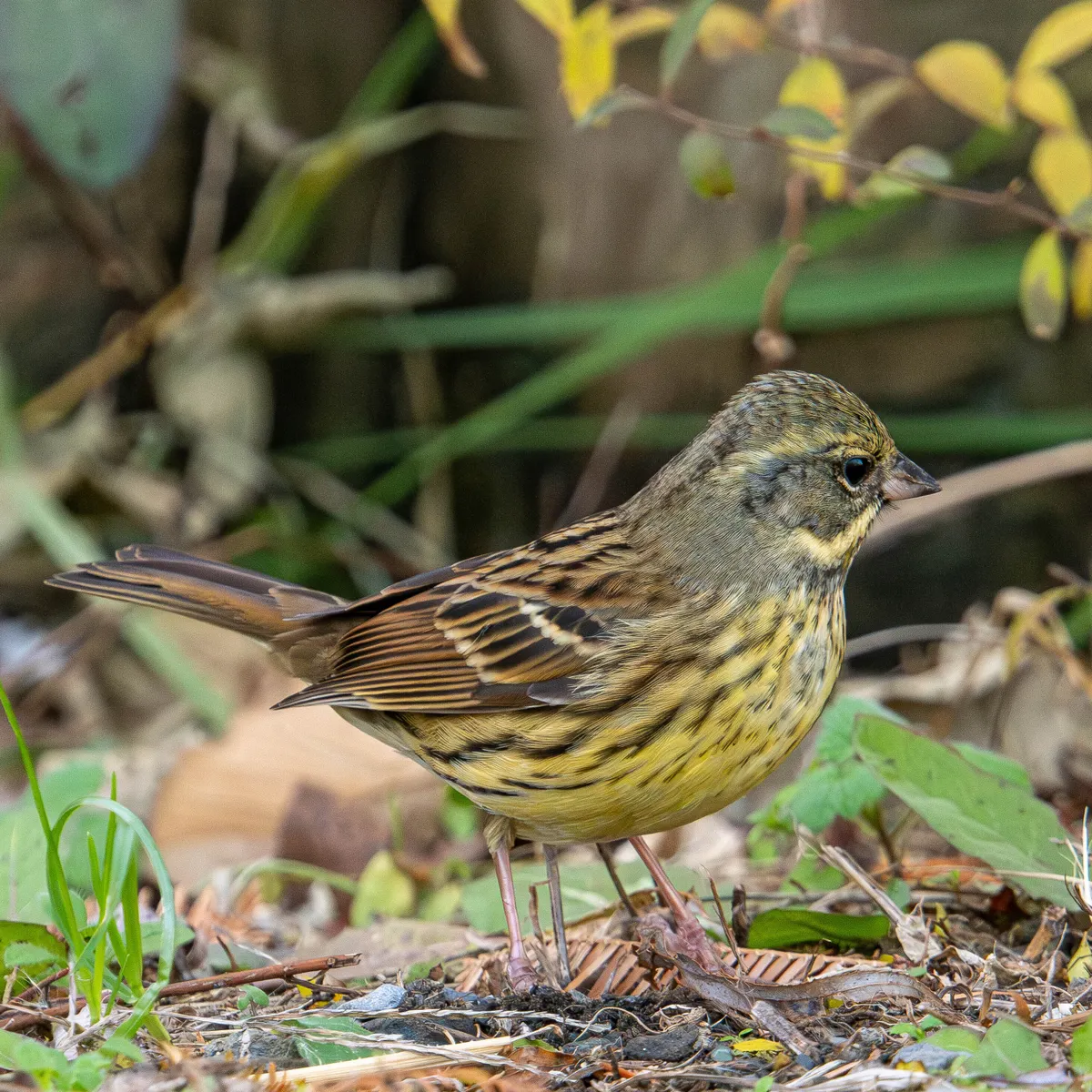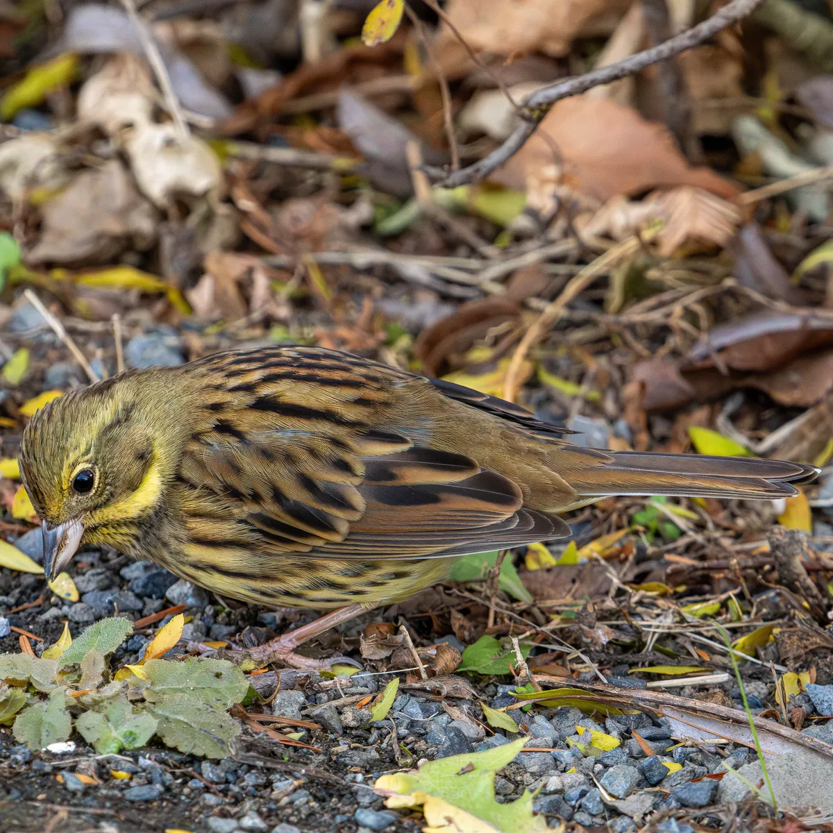 気付くと足下で何か動いていて、よく見たらアオジでした。