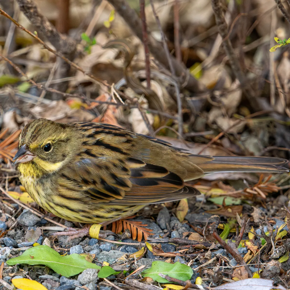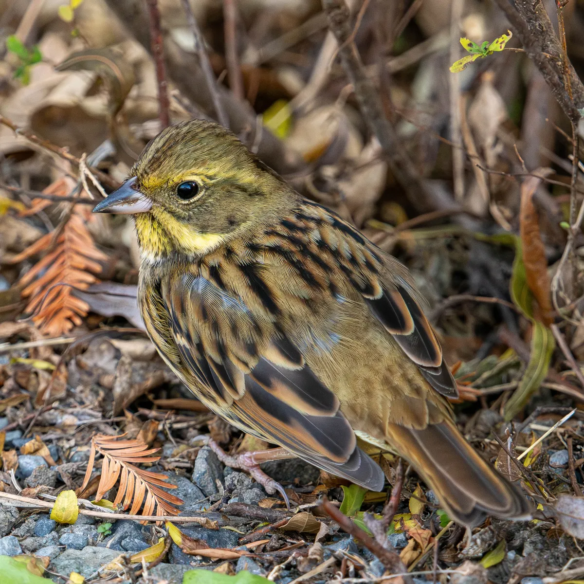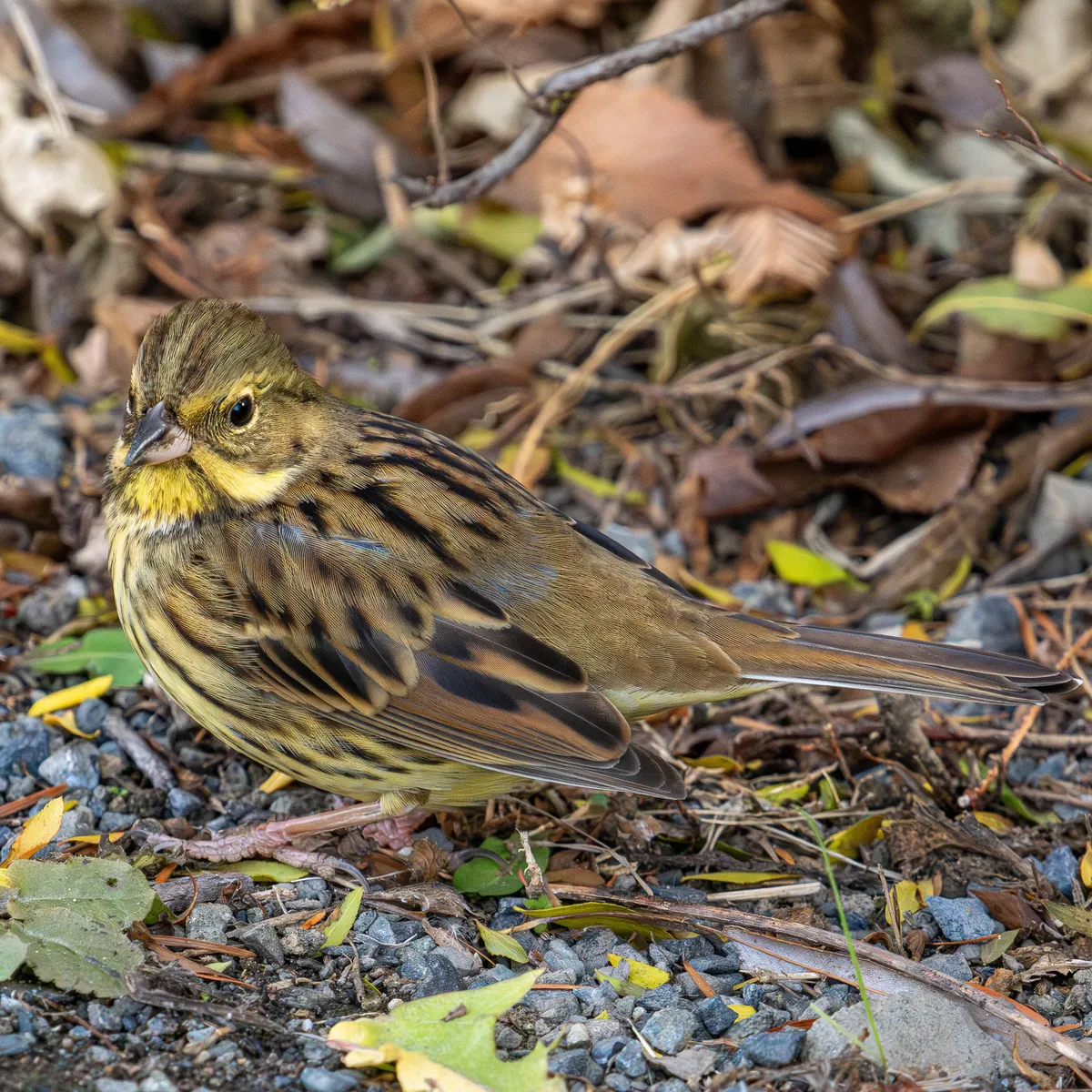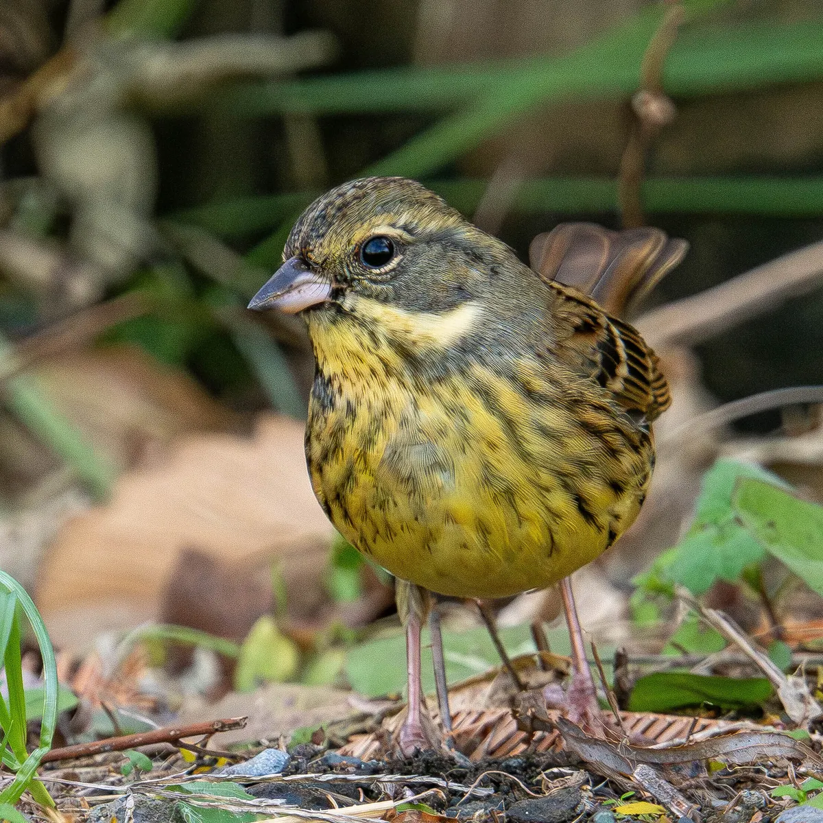 気付くと足下で何か動いていて、よく見たらアオジでした。
