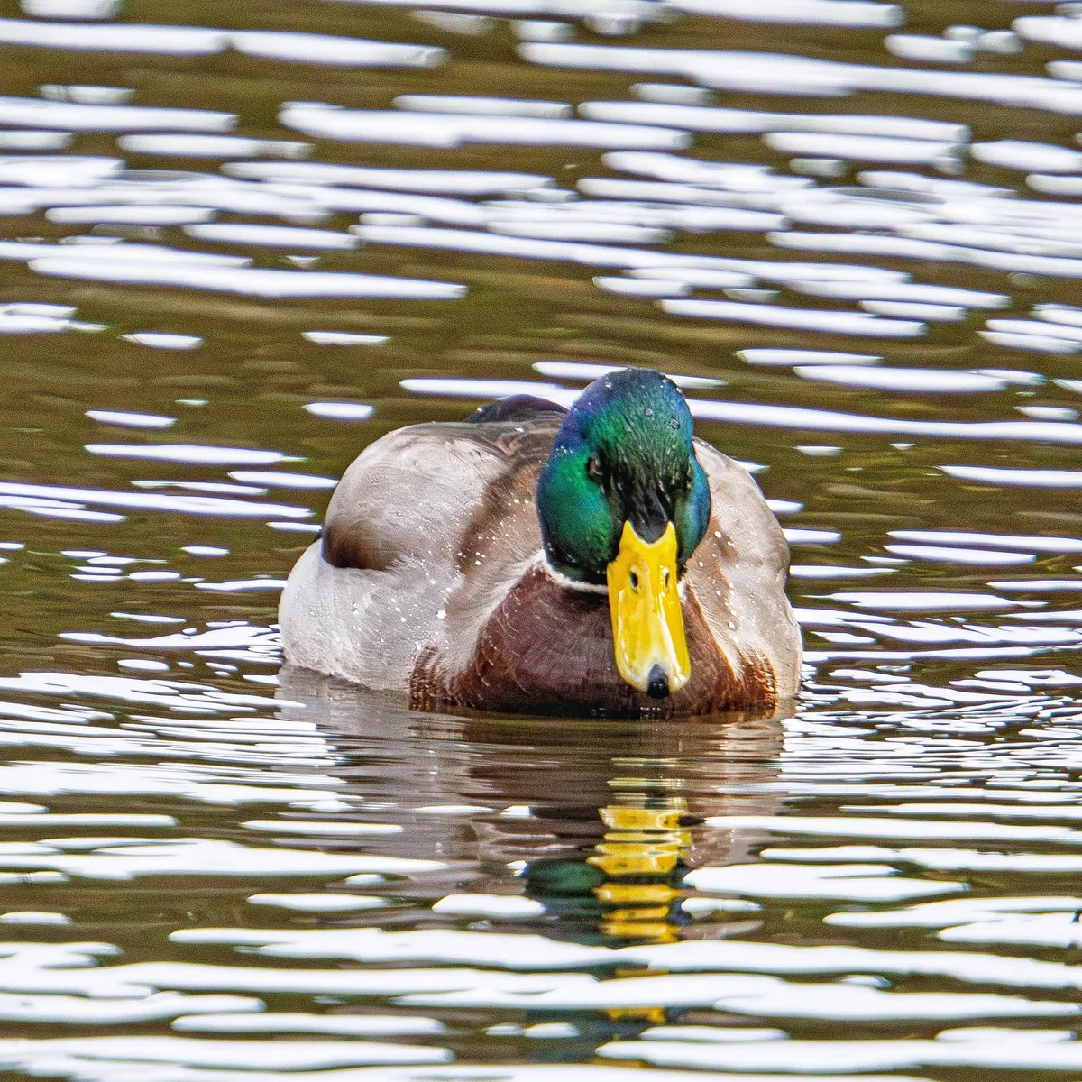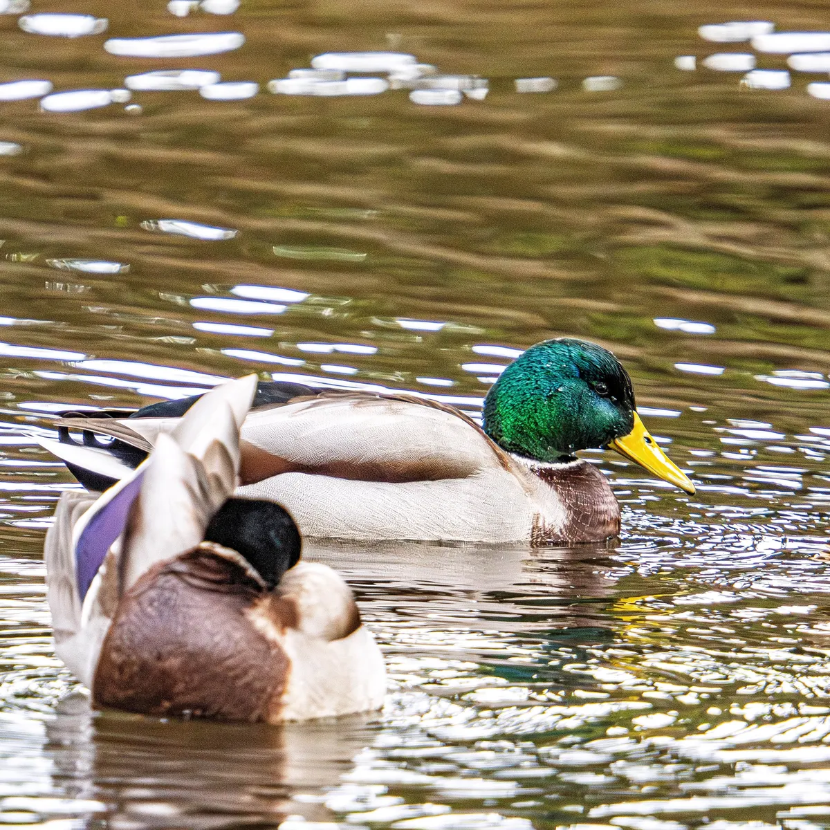 うちの近所の川に、くちばしが黄色くて茶色い体色のメスと緑の頭のオスが一緒にいるので、マガモ♂とカルガモ♀のカップルだと思い込んでいましたが、普通のカルガモのカップルだったんですね。