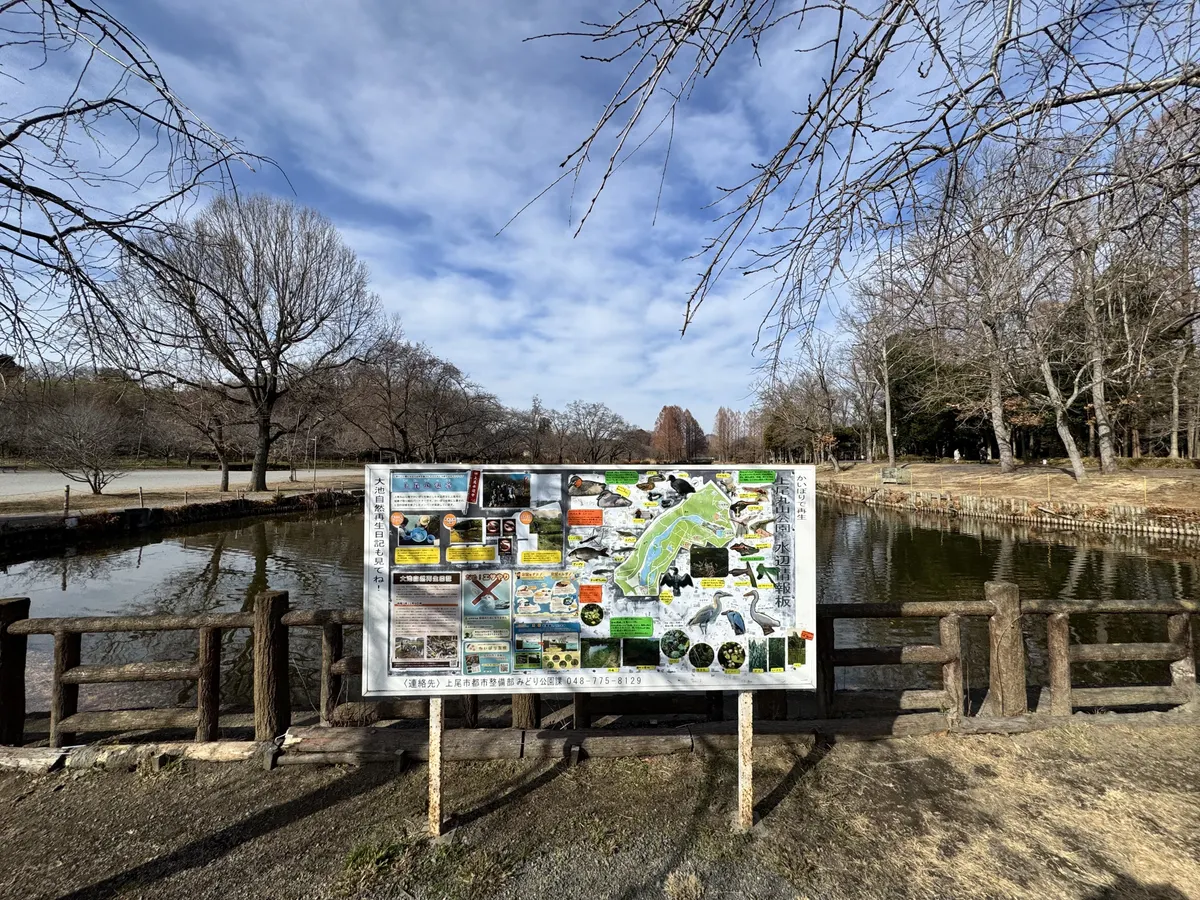 はじめに寄った北本自然観察公園は駐車場がほぼ満車だったのでパス(停められたけどギチギチでドアパンが怖かった)、次の探鳥地として行きやすい上尾丸山公園へ行ってみました。こちらの駐車場はガラガラ👍