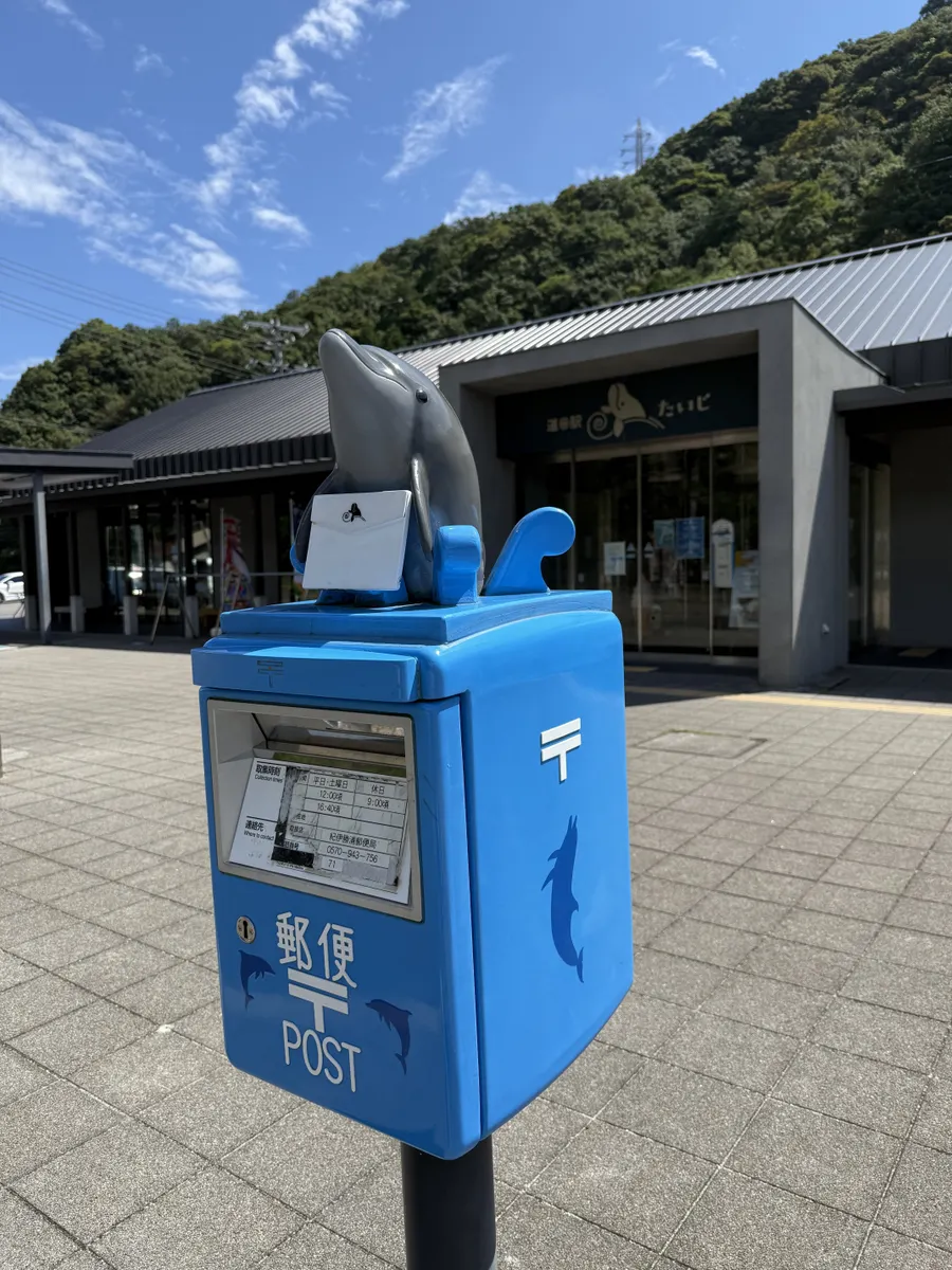 レストラン開店前に到着したので、イルカの郵便ポストなどの写真を撮ったりして待つことに🐬
