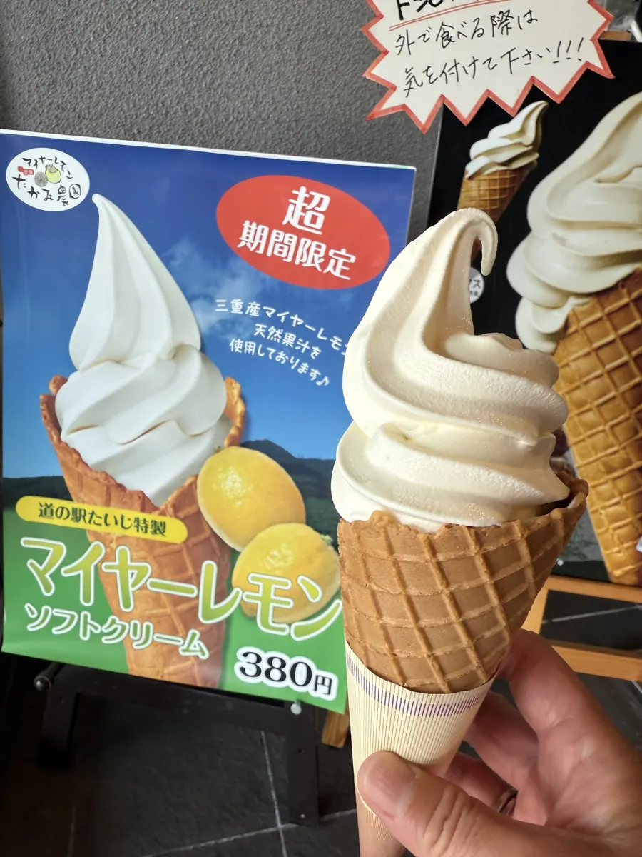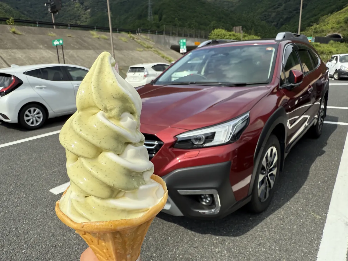 始神テラスでは眠気覚ましに本日3つ目のソフトクリームを🍦