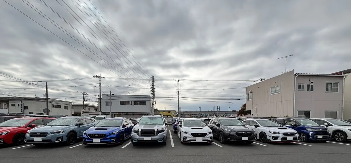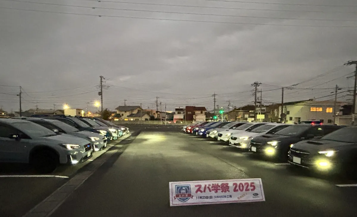 朝出遅れて②駐車場に止めて会場に向かう途中、既にスバ学生さんの愛車がチラホラ。