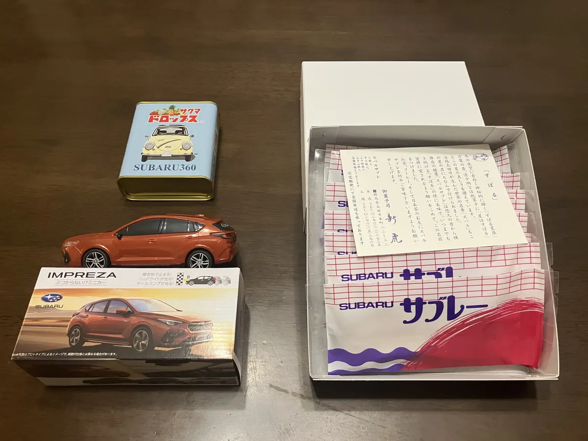 そしてSUBARUの工場でしか手に入らない「スバル・サブレー」「サクマ式ドロップ・SUBARU360缶」を調達し、カミさんのご機嫌とりに役立てる事としました…😅