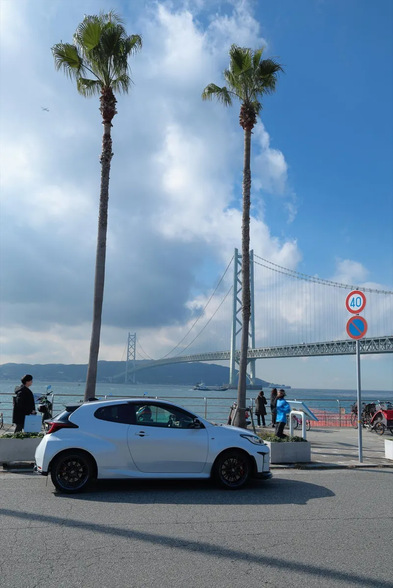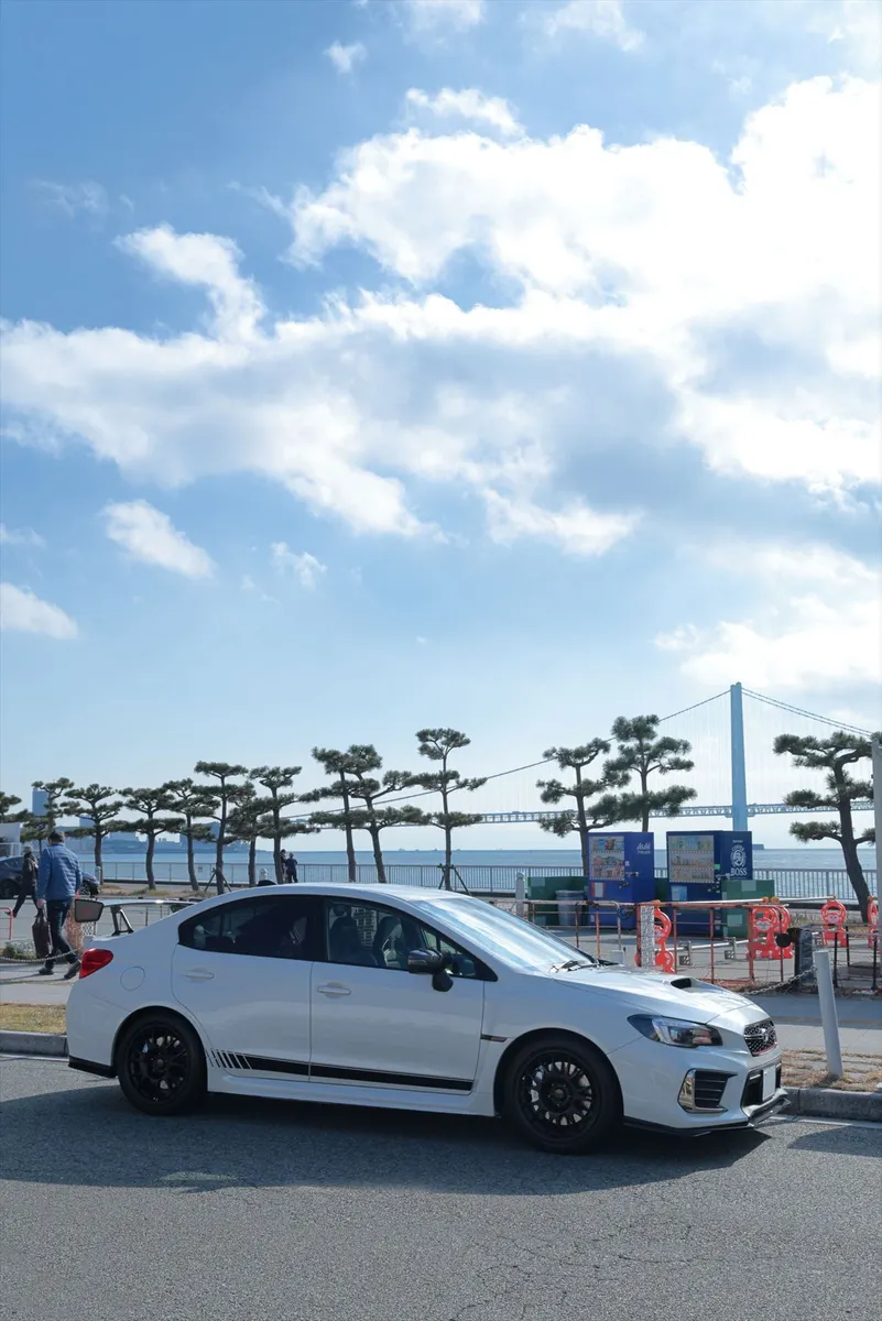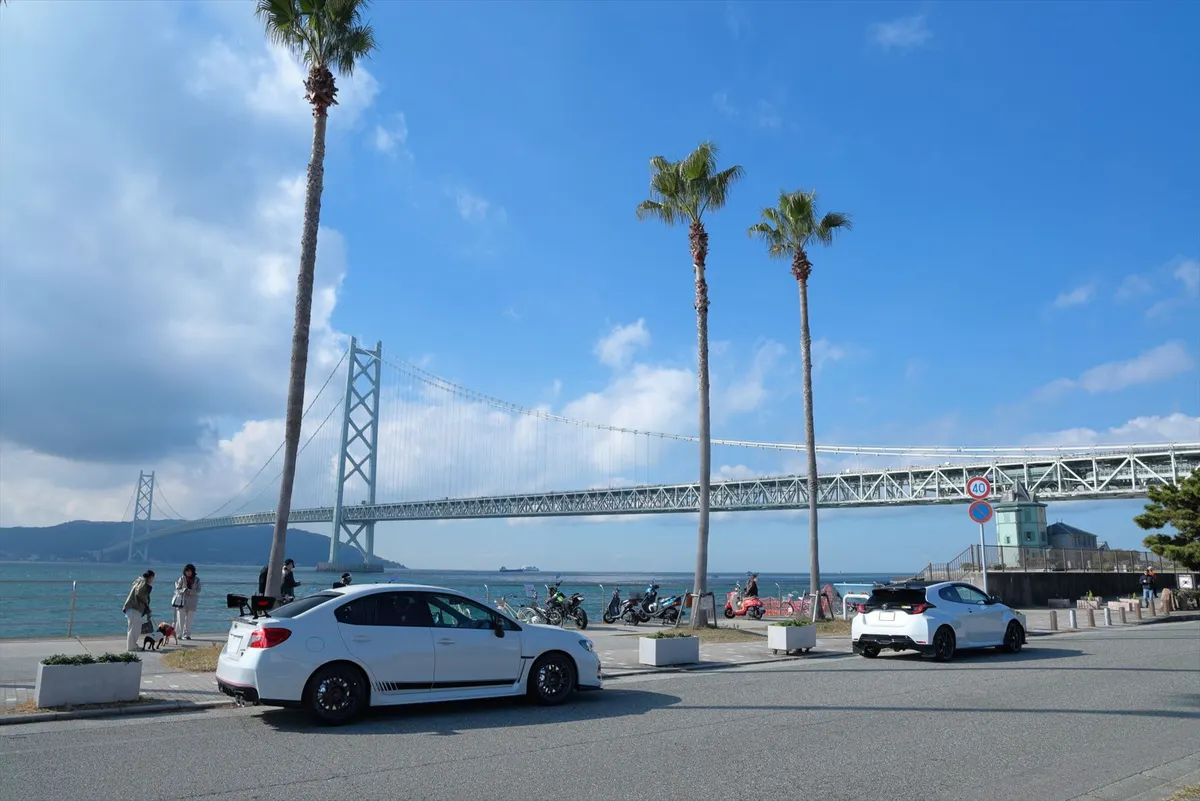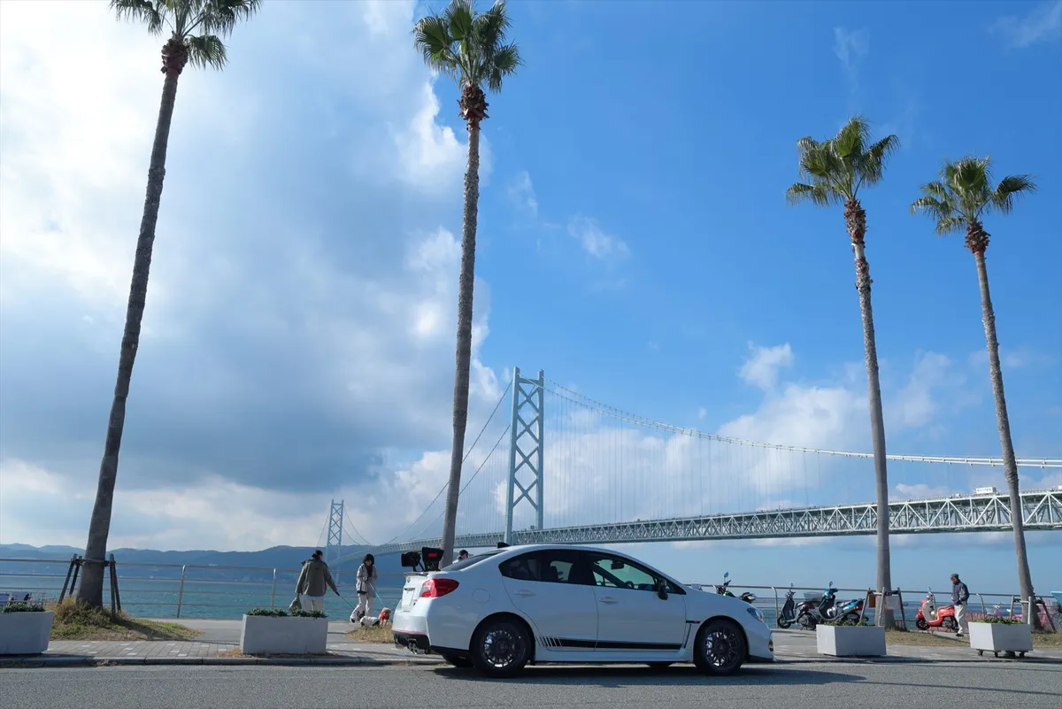 5. 最初に向かったのは私のリクエストで、明石海峡大橋をバックに写真が撮れるこのフォトスポット。ここで前にWRXを撮ったのは7年前。その後結構人気撮影スポットになってたので駐めれるか心配だったのですがタイミングよく空いてました。