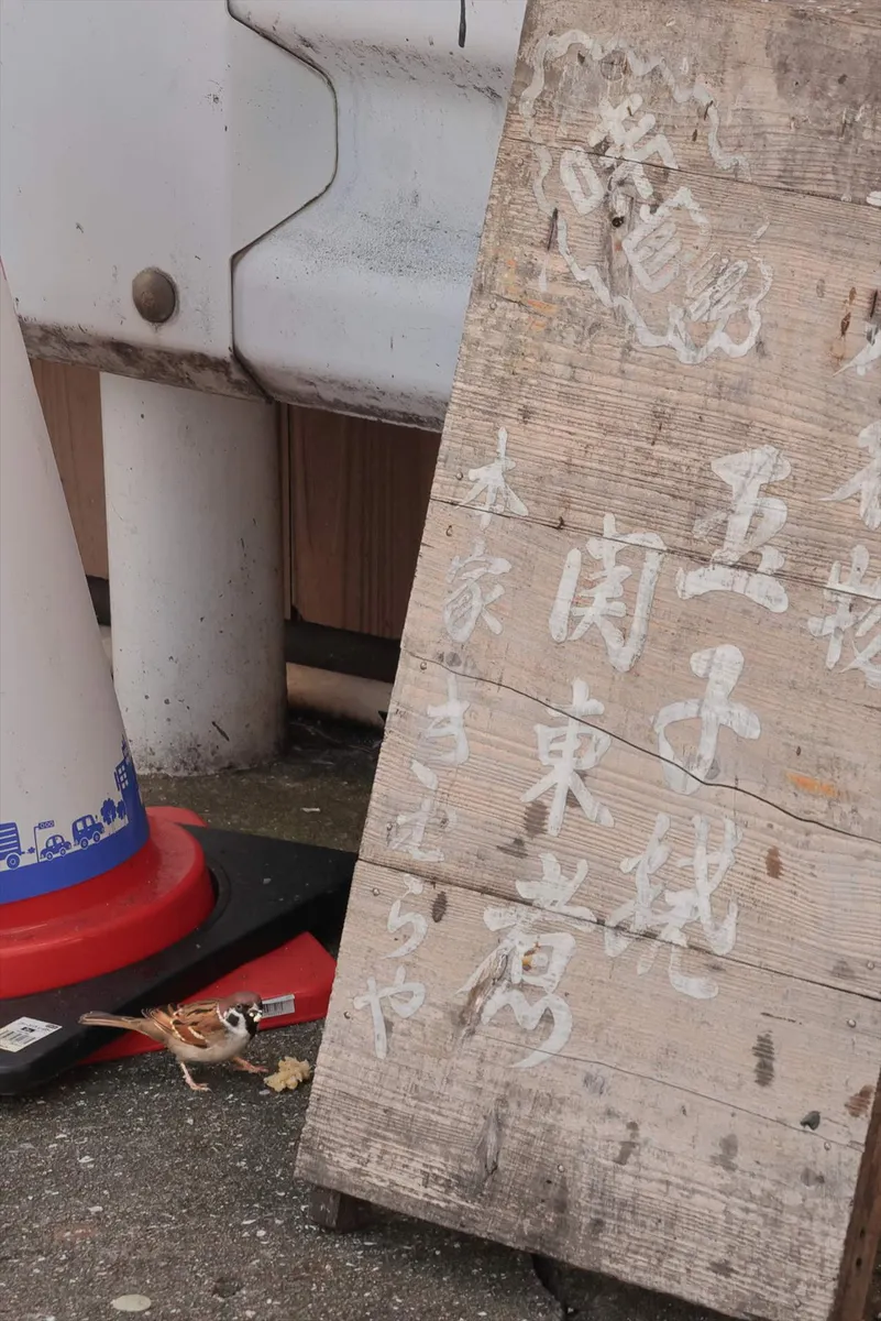 13. お店の外にはスズメがいっぱい。よく見ると明石焼きを食べてます。