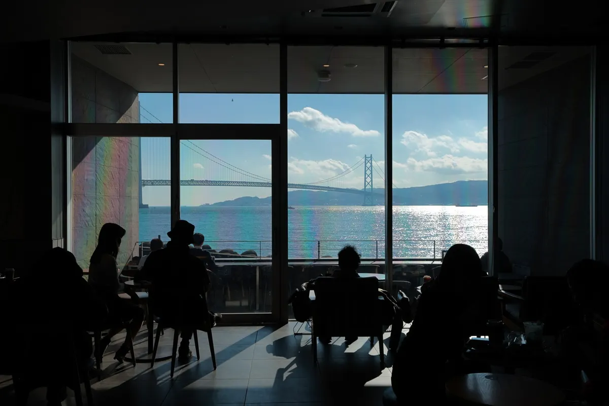 19. たこ焼き太郎3さんにご案内いただいたこちらのスタバ、2階が飲食スペースになっていて明石海峡大橋が真正面に見える絶景スポットでした。