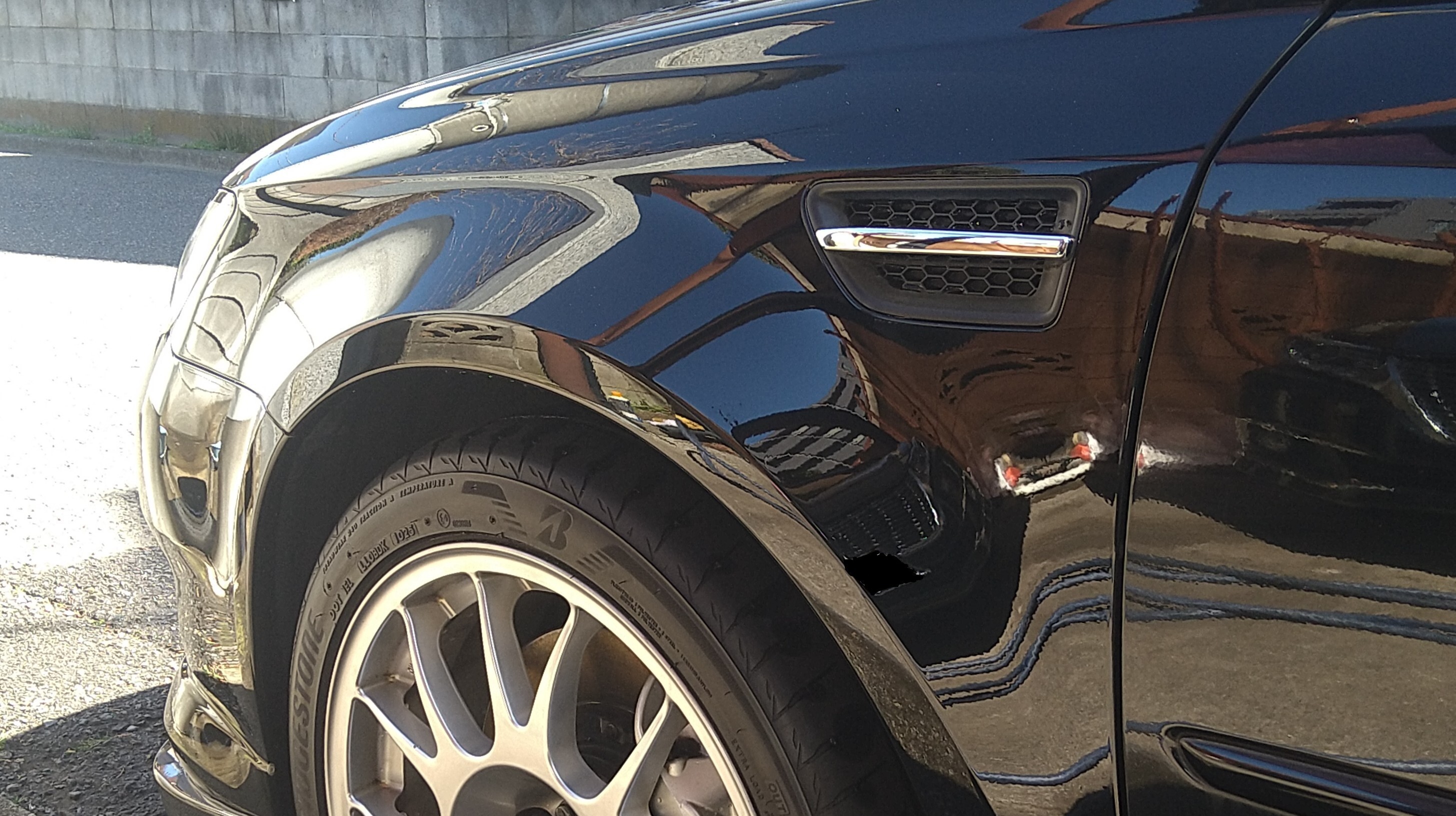 よく見れば気づく程度で、いつかは直そうと思いながらもずっと放置していましたが、ようやく1年前にディーラーの板金工場に預けてキレイに直してもらっています。