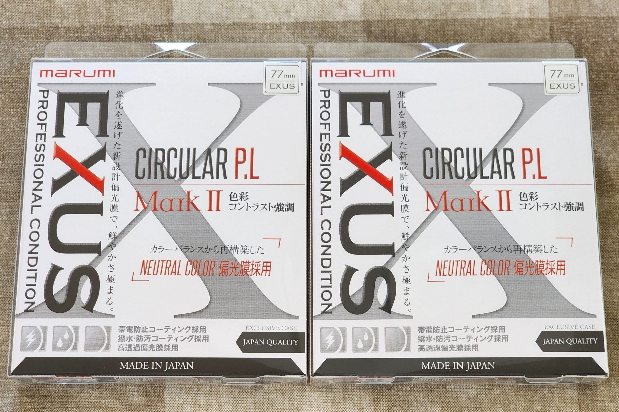選んだのはTOP画像のマルミ光機の「EXUS C-P.L MarkⅡ」となります。何故マルミを私が選ぶかというと昔からキヤノンレンズのキャップとの相性がいいこと。(今は某社も改善されてるようですが)あと強力な「帯電防止コーティング採用」で静電気による微細なチリ・ホコリが付きにくいという特徴があるからです。