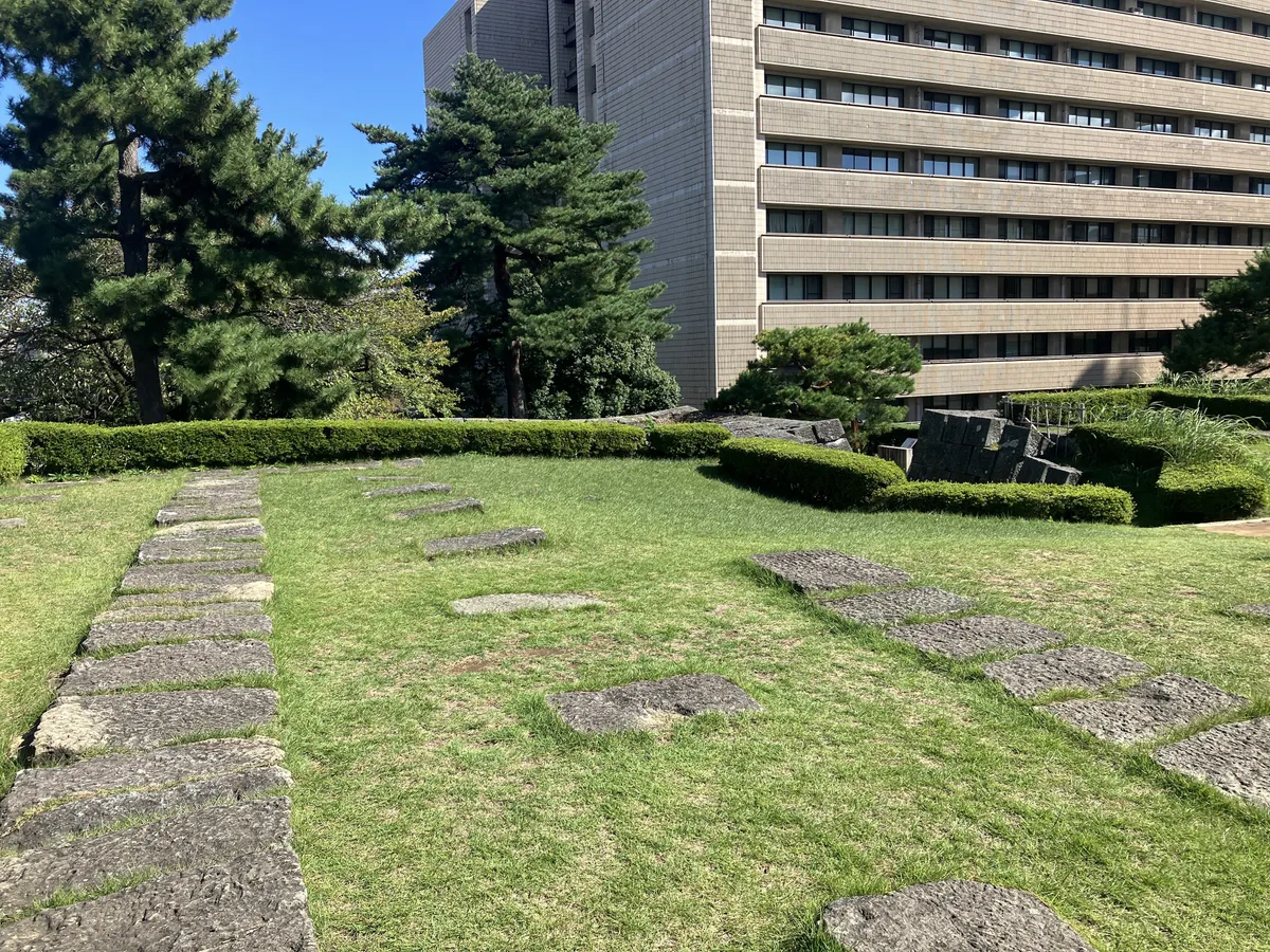 天守があったであろう天守台。その向こうに見えるのは、御殿のあった場所にある県庁のビル。