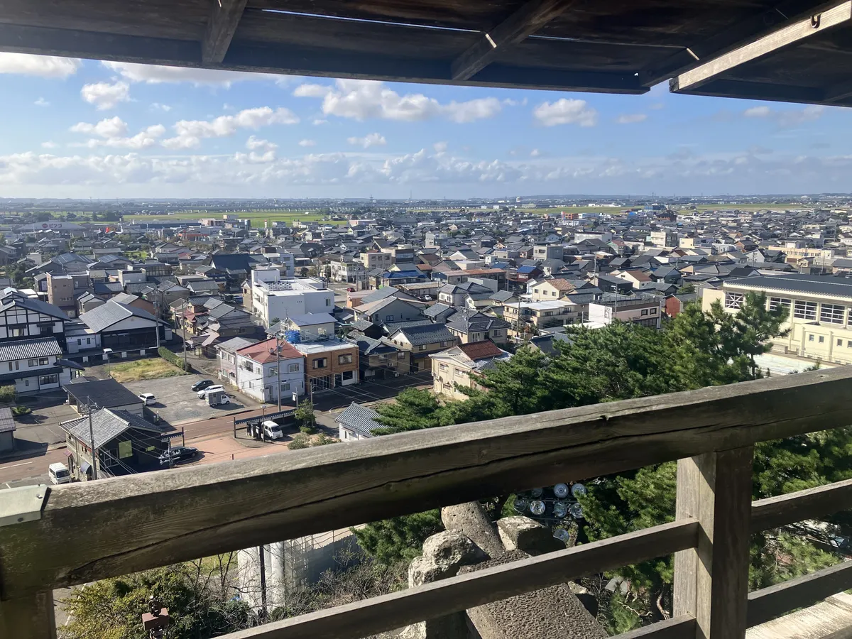周りは平地なので、かなり遠くまで見渡すことができます。ただ、3階までの階段はとても急で、ほぼ「はしご」。手すりのほかに丈夫なロープが備えつけてありました。