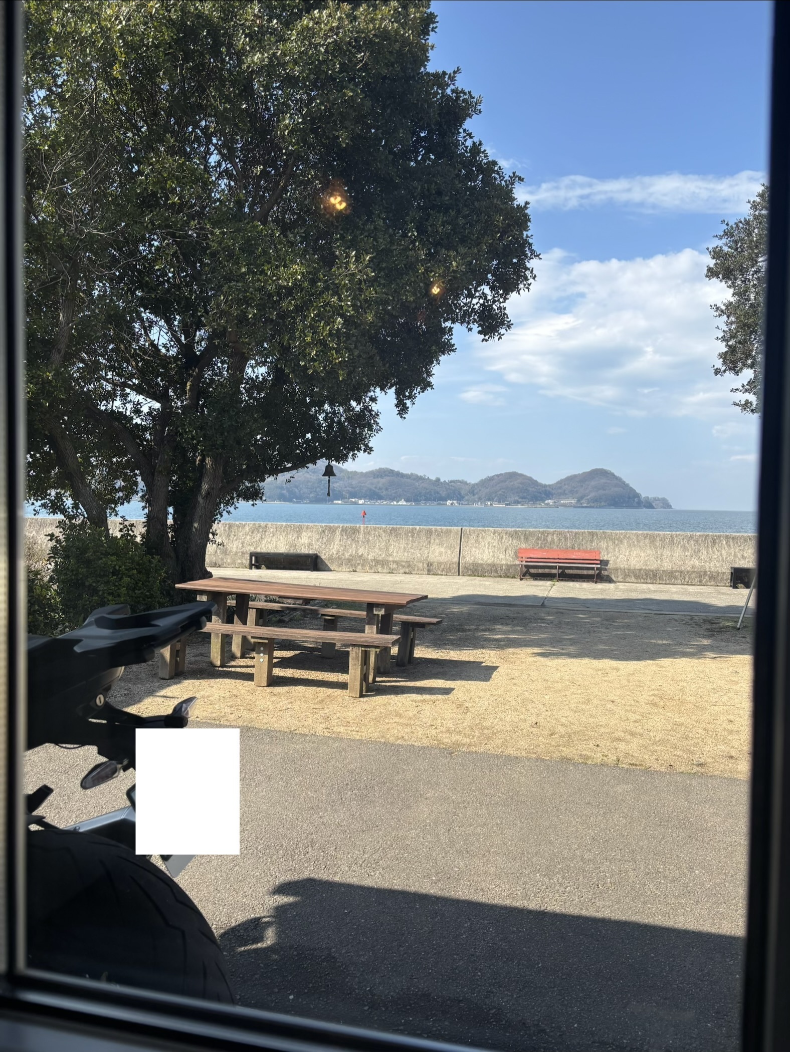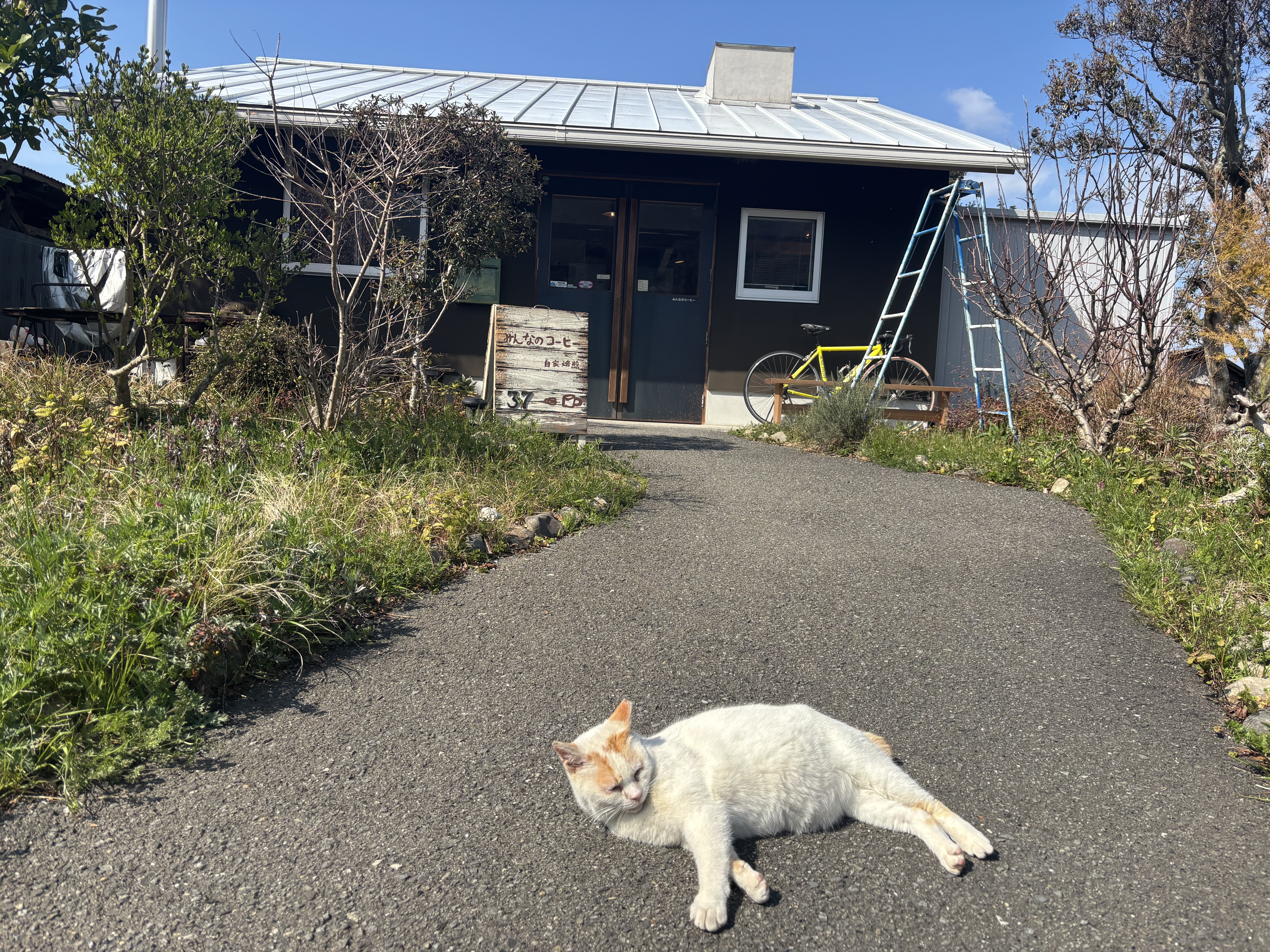 カフェの看板⁉︎ニャンコ😸と自転車、窓から見える景色、ホントに良いですね〜 ^_^