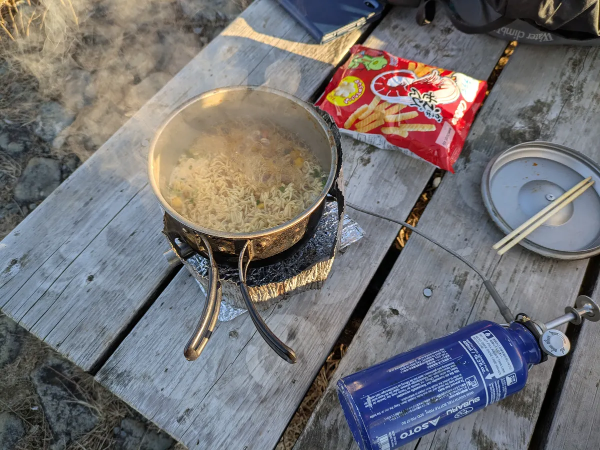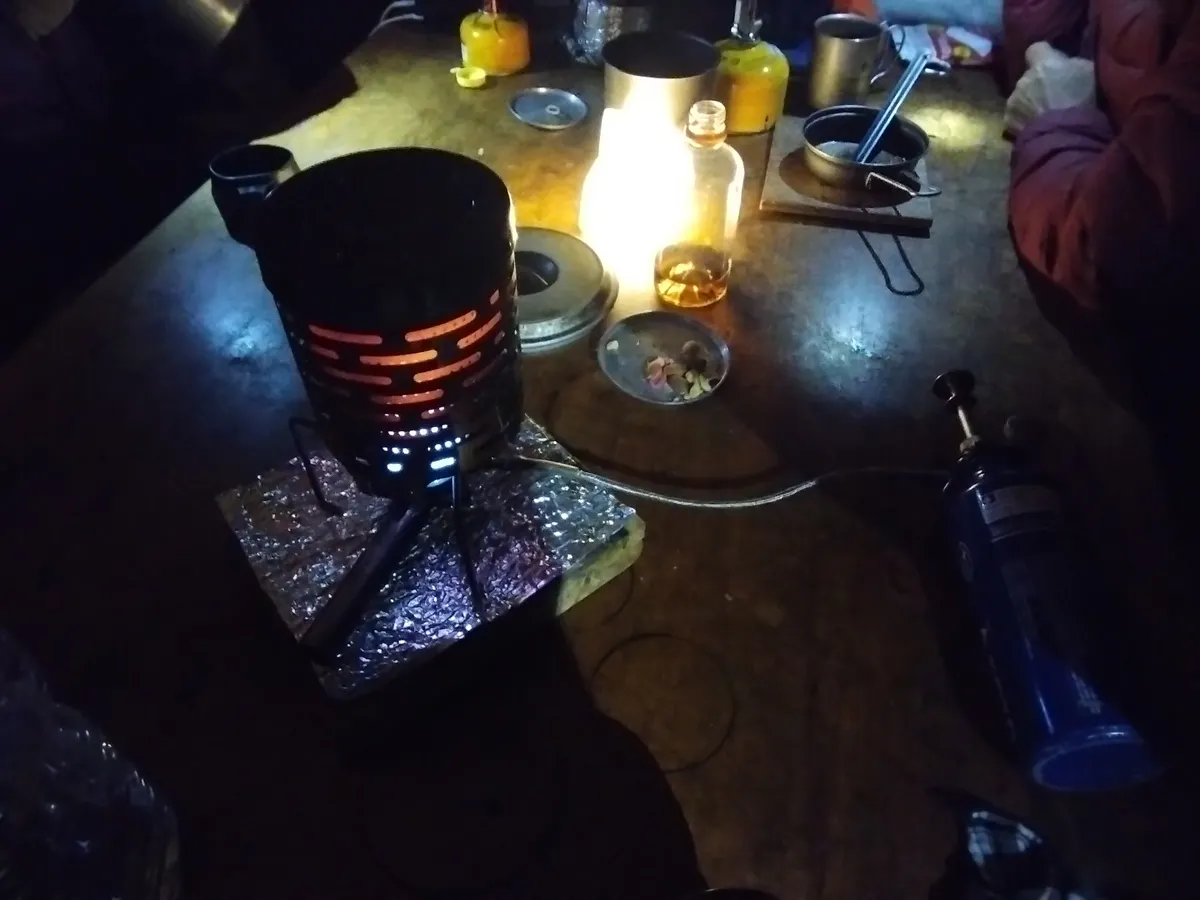 「SOTO SUBARU 」のハイパワーガソリンストーヴで暖を取り