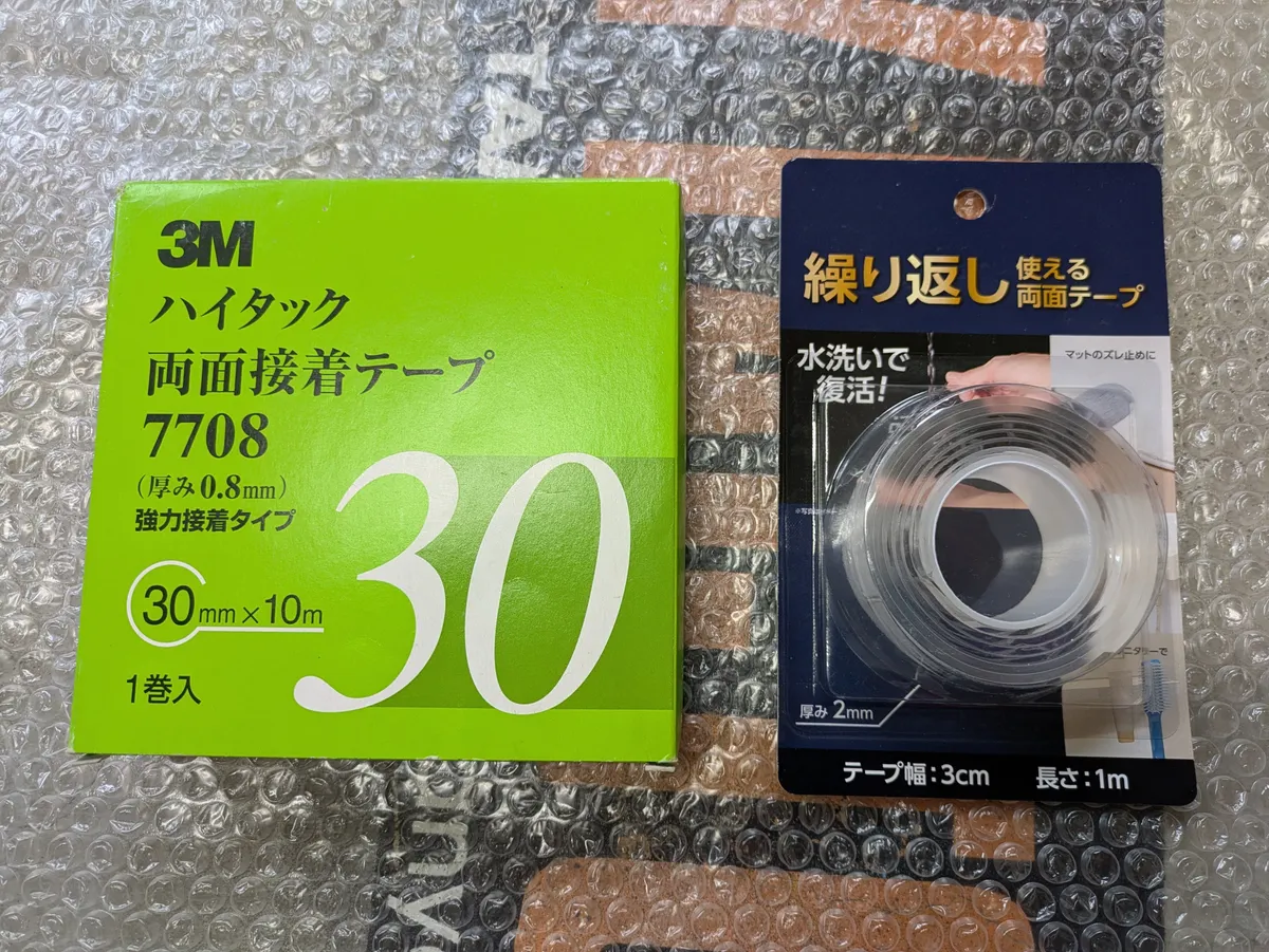 3M両面テープ+アルポリ+3M両面テープ+繰り返し使える両面テープ。この厚みがあれば、ボルトの厚みをかわせるか?