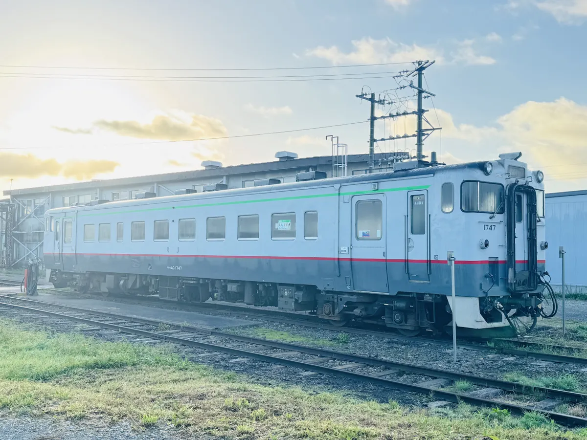 ウォーキング中に苫小牧運転所にて見える場所にキハ40 宗谷色が停車していたので朝日を浴びながら撮影をしました。
