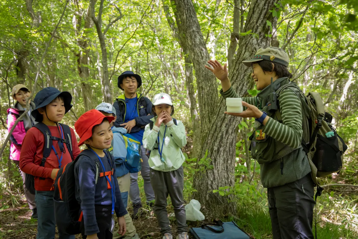 ガイドウォークでは、インタープリターから愉しいお話を聞きながら、風の音や草木の匂い、聞こえてくる水の音や鳥のさえずりなどの自然の息吹を全身で感じることができました。