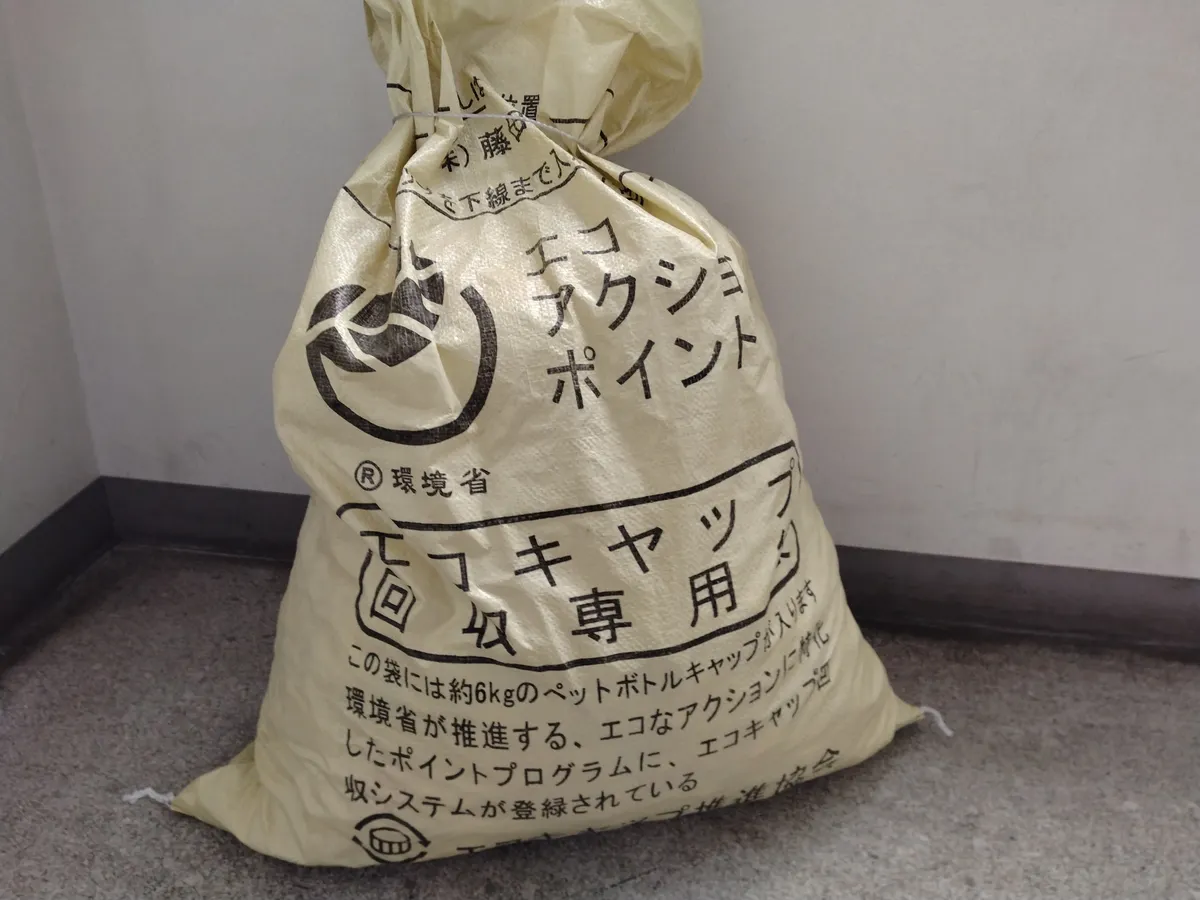 これは、店頭でペットボトルのキャップを回収し、NPO法人エコキャップ推進協会を通じてリサイクルの促進、CO2の削減、売却益で発展途上国の医療支援を行う活動です。また、リサイクルの過程で障がい者や高齢者雇用の創出にも繋がっています。