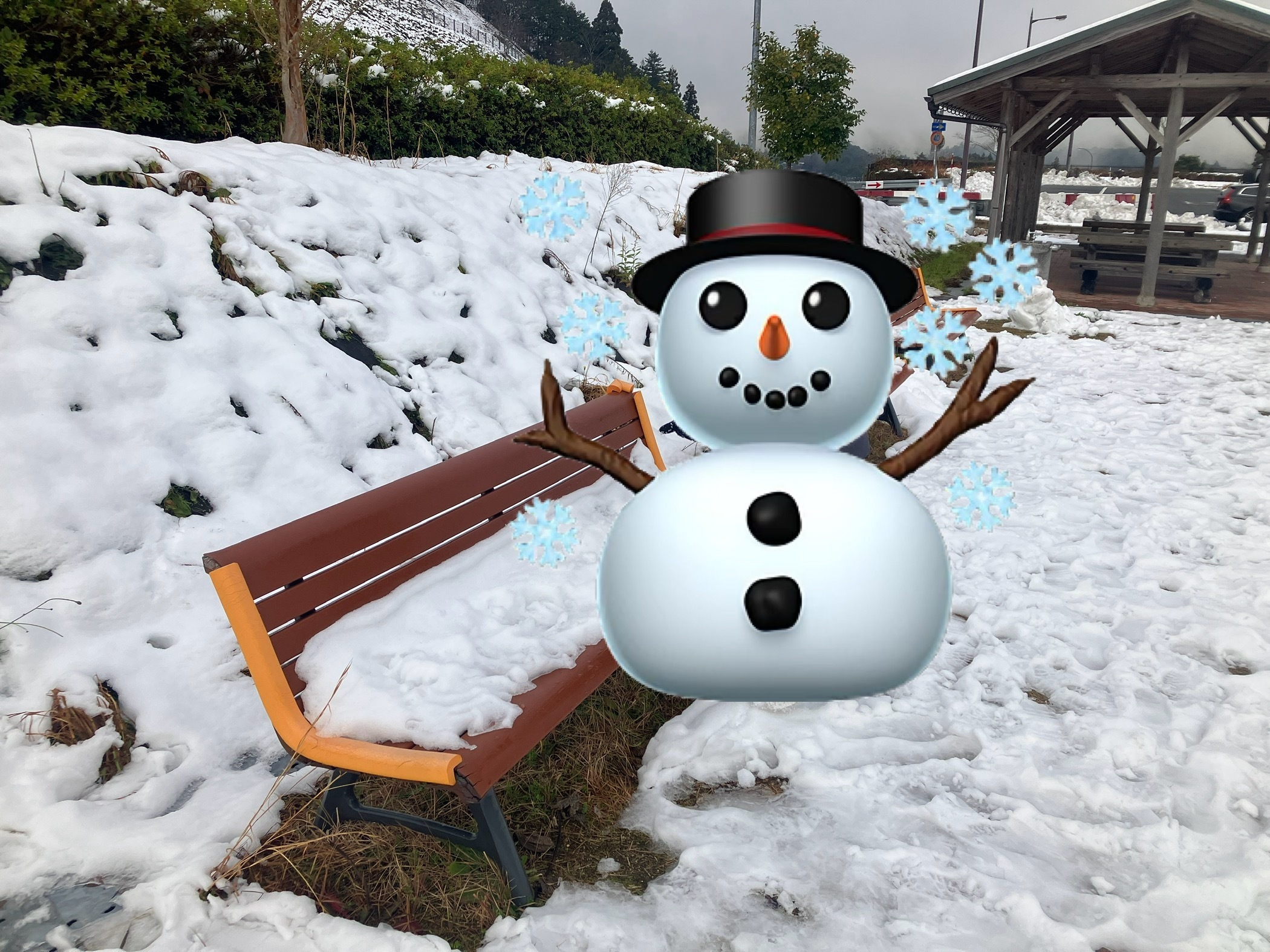 京都縦貫道を北上していくと、徐々に雪が見られるように。由良川PAに立ち寄ると、適度に雪があり楽しく遊ぶことができました。