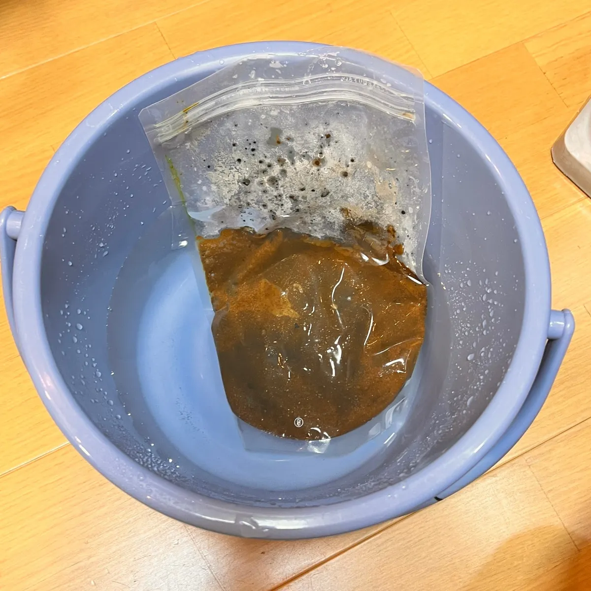 けっこう熱を持つのでバケツに入れて冷却!(マニュアル通り)