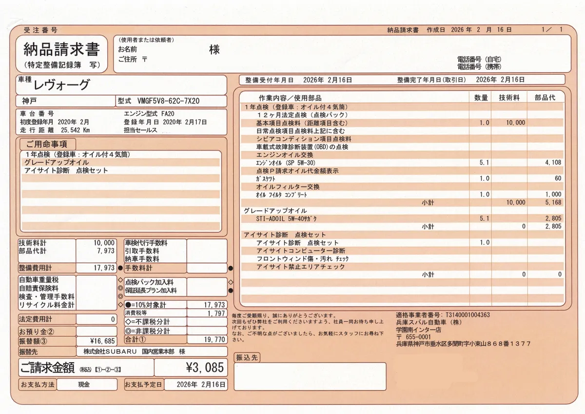トップ > その他 > 12ヶ月点検完了 リンダ 2026/02/17 20:57 12ヶ月点検完了 すっかりご無沙汰になってしまっている学園生活ですが、健康診断はしっかり受けてきました。 特にこれといった注文をするでもなく・・・オーナーよりも健康体で一安心。 あ、オイルだけは差額払ってSTI Advanced Oil 硬めの5w-40。これで、酷暑の時期も安心・・・と信じてます。 タイヤの残り溝が5.2mm&ヒビ割れ出現なので、ボチボチ次期タイヤを考えないとですね。 いいね 共有する 共有する X facebook LINE リンクをコピー コメントする 0 件の返信 (新着順)