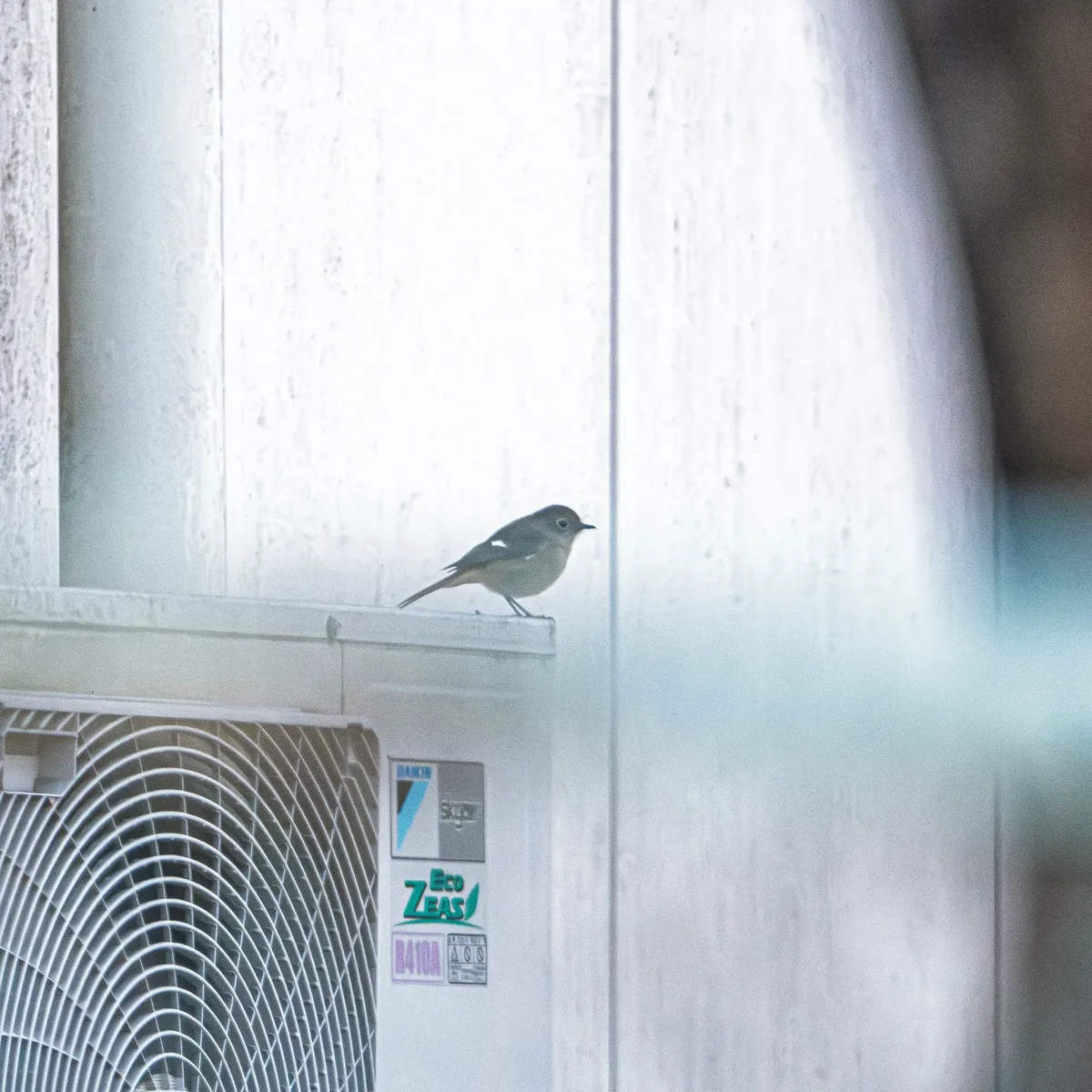 遠くの建物の影にいた【ジョウビタキ】のメス