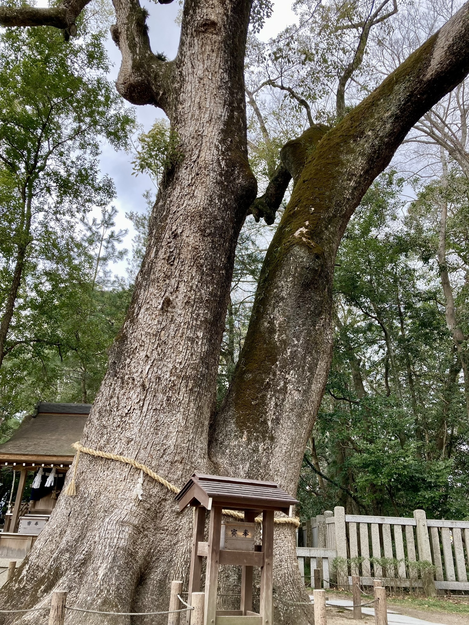 伊弉諾神宮はすぐ近く。夫婦の大楠は樹齢約九百年、兵庫県指定天然記念物とのことです。