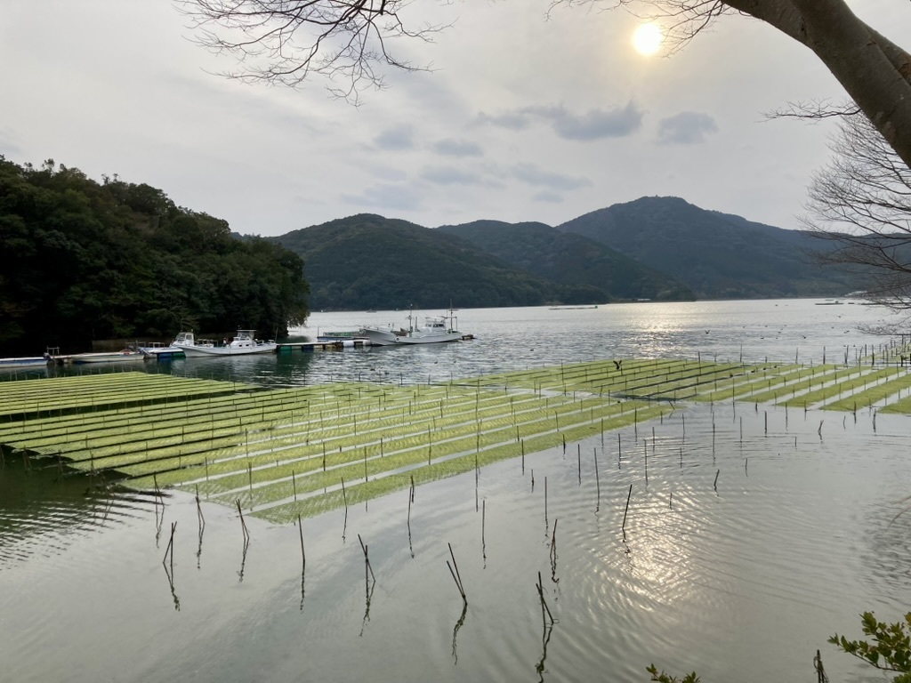 五ヶ所湾のアオサノリ養殖。↓ 浦の名称は失念。